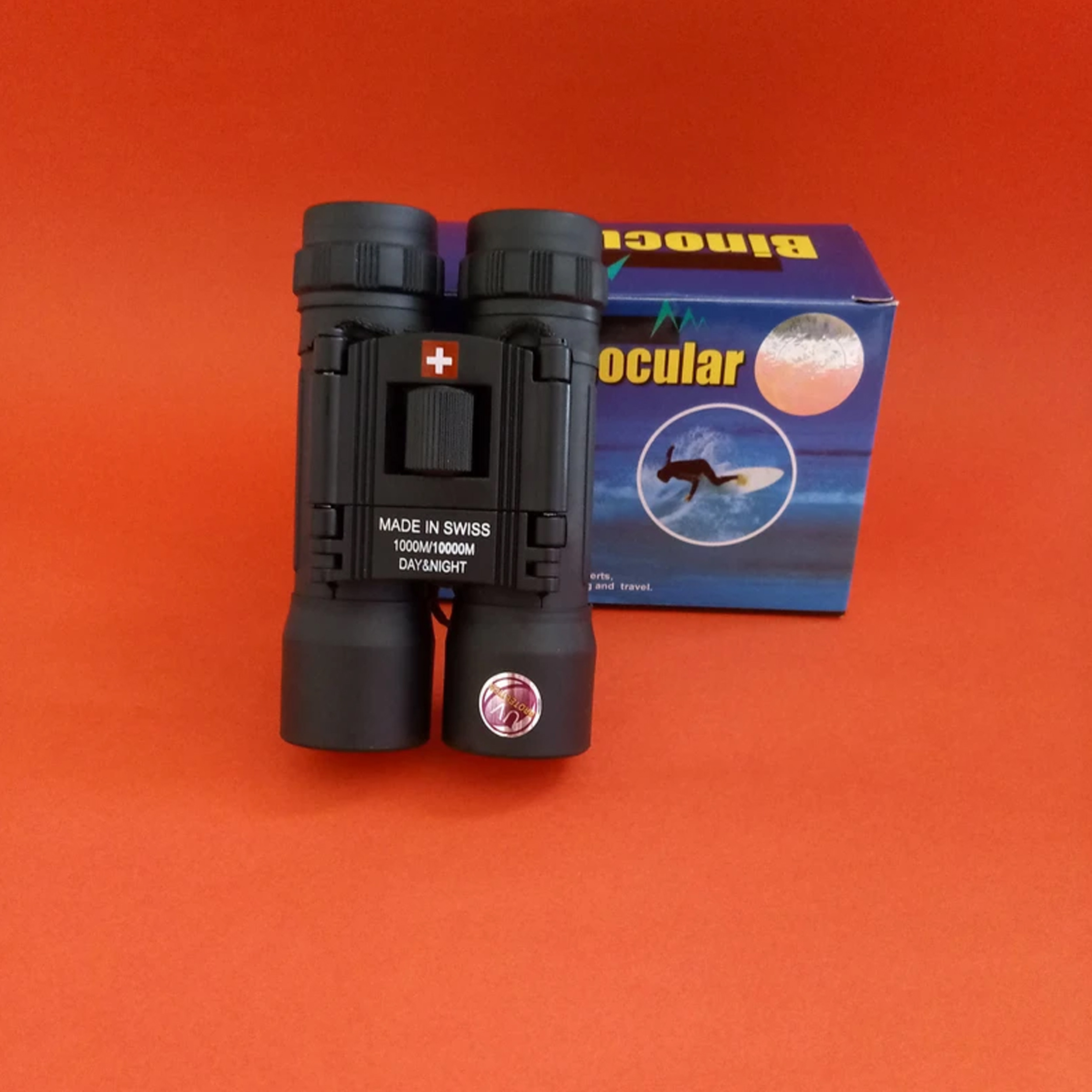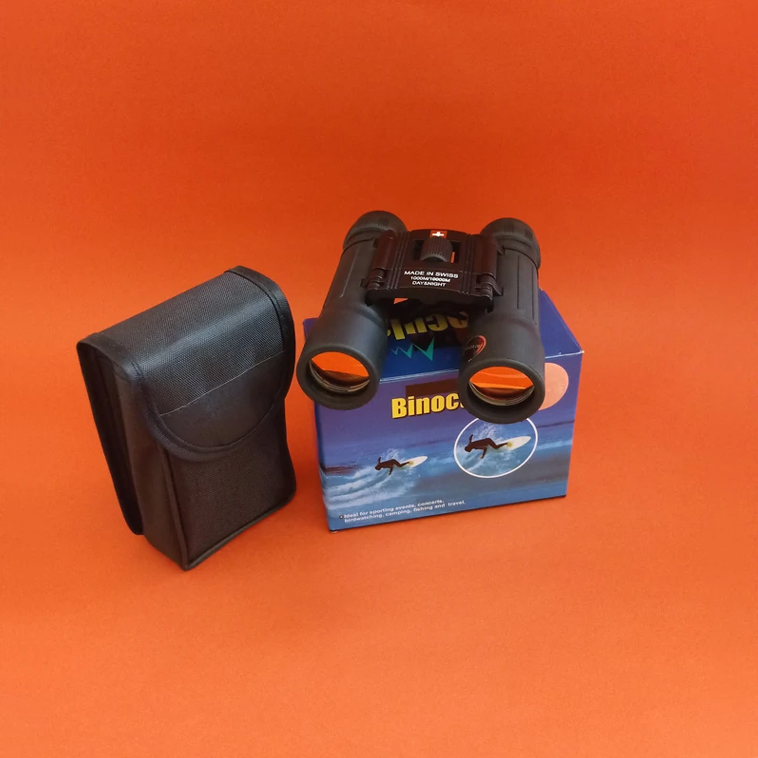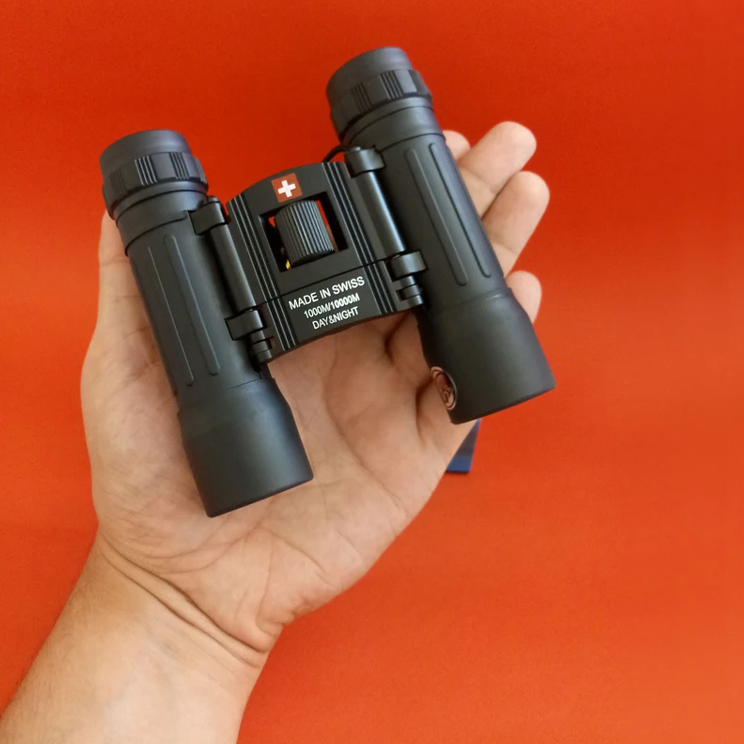 دوربین دوچشم سوئیسی day & night دید در روز و دید در شب ، دارای لنز بک فور با پوشش مولتی کوتد رِد و فیلتر نور فرابنفش UV ، لنز یو وی از مهمترین ویژگی های این دوربین است که کیفیت تصویر بسیار بالایی به دوربین میدهد و همچنین موجب عمر بالای لنزها میشود که به هیچ عنوان کیفیت اولیه خود را از دست نمیدهند ، بدنه دوربین تمام فلز با روکش راور ضد آب و ضد ضربه است که کاملا در مقابل برف و باران و پاشش آب مقاوم بوده و در مقابل ضربه نیز مقاومت بالایی دارد ، دوربین دارای تنظیم فوکوس فوق العاده روان بوده و پر شده با گاز نیتروژن است، همچنین از دیوپتر چشمی برای اصلاح عیوب انکساری چشم نیز برخوردار است ، قابلیت تاشو دارد و بسیار خوش دست و سبک وزن بوده و فقط 175 گرم وزن دارد ، دارای کیف برزنتی کمری و بند و دستمال لنز مخصوص است که در درون جعبه محصول موجود میباشد.