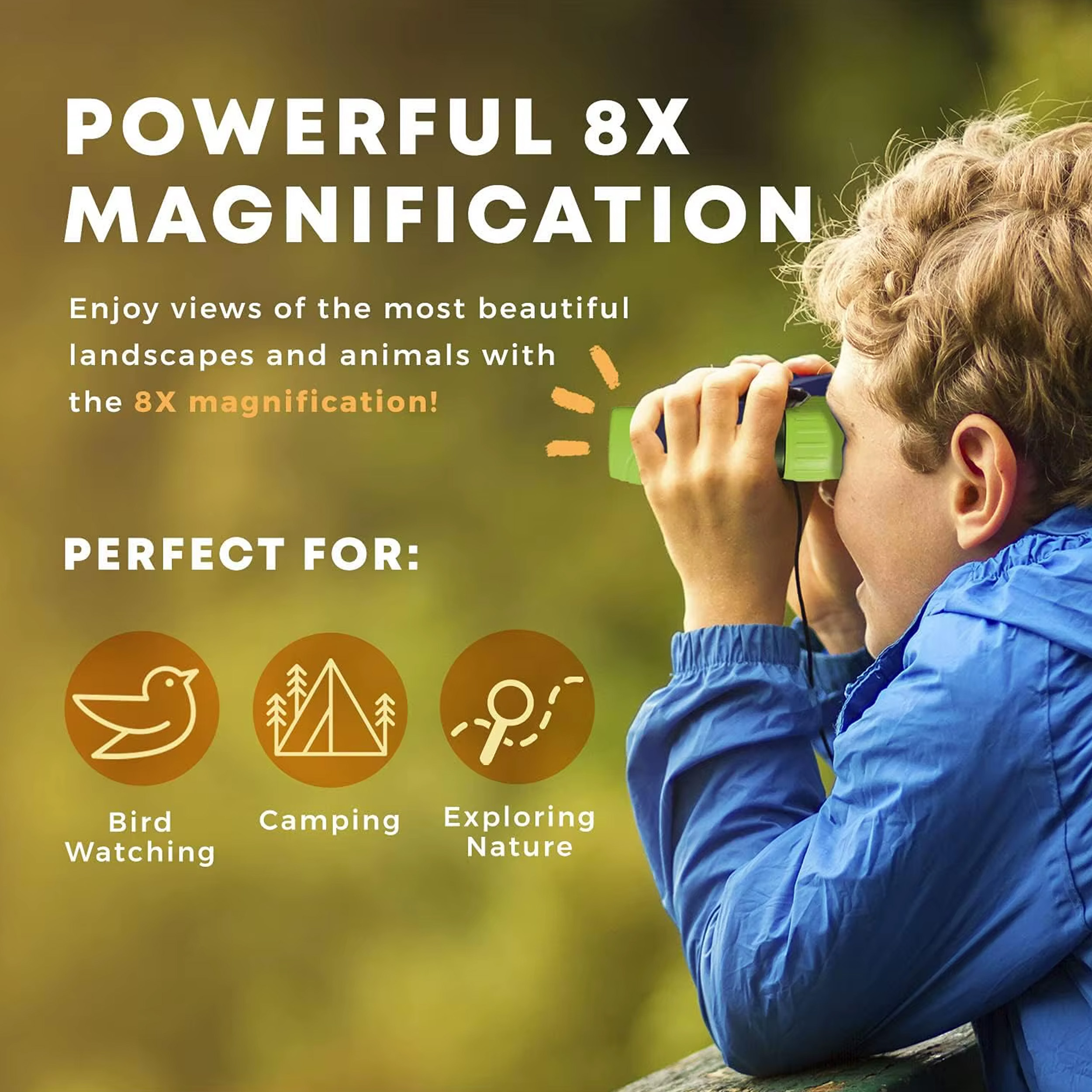 این دوربینهای دوچشمی با رنگ سبز خود، حس کنجکاوی هر ماجراجوی را بیدار میکنند. پوشش لاستیکی نه تنها کاملاً در دست و چشم قرار میگیرد، بلکه در برابر خراش محافظت میکند. ماجراجوییهای باشکوه: چه پیادهروی در جنگل، تعطیلات کنار دریاچه، در کوهستان، سفر، در باغوحش یا در استادیوم، این دوربینهای دوچشمی هر سفر را به یک سفر اکتشافی فوقالعاده هیجانانگیز تبدیل میکنند و هدیهای عالی برای خود و دوستان شما می باشد. اندازه قوی - به لطف بزرگنمایی 8 برابر، زیباترین مناظر و حیوانات مختلف در اندازهای خیرهکننده درست جلوی چشم شما میدرخشند. چرخ فوکوس و جبران دیوپتر، وضوح فوقالعادهای را تضمین میکنند. بسیار کاربردی: اندازه جمع و جور، دوربینهای دوچشمی کاملاً در هر جیبی جا میشوند و هنگام سفر زیاد سنگین نیستند. کیف پارچهای ولکرو و بند آویز موجود در بستهبندی برای سفر فوقالعاده هستند.