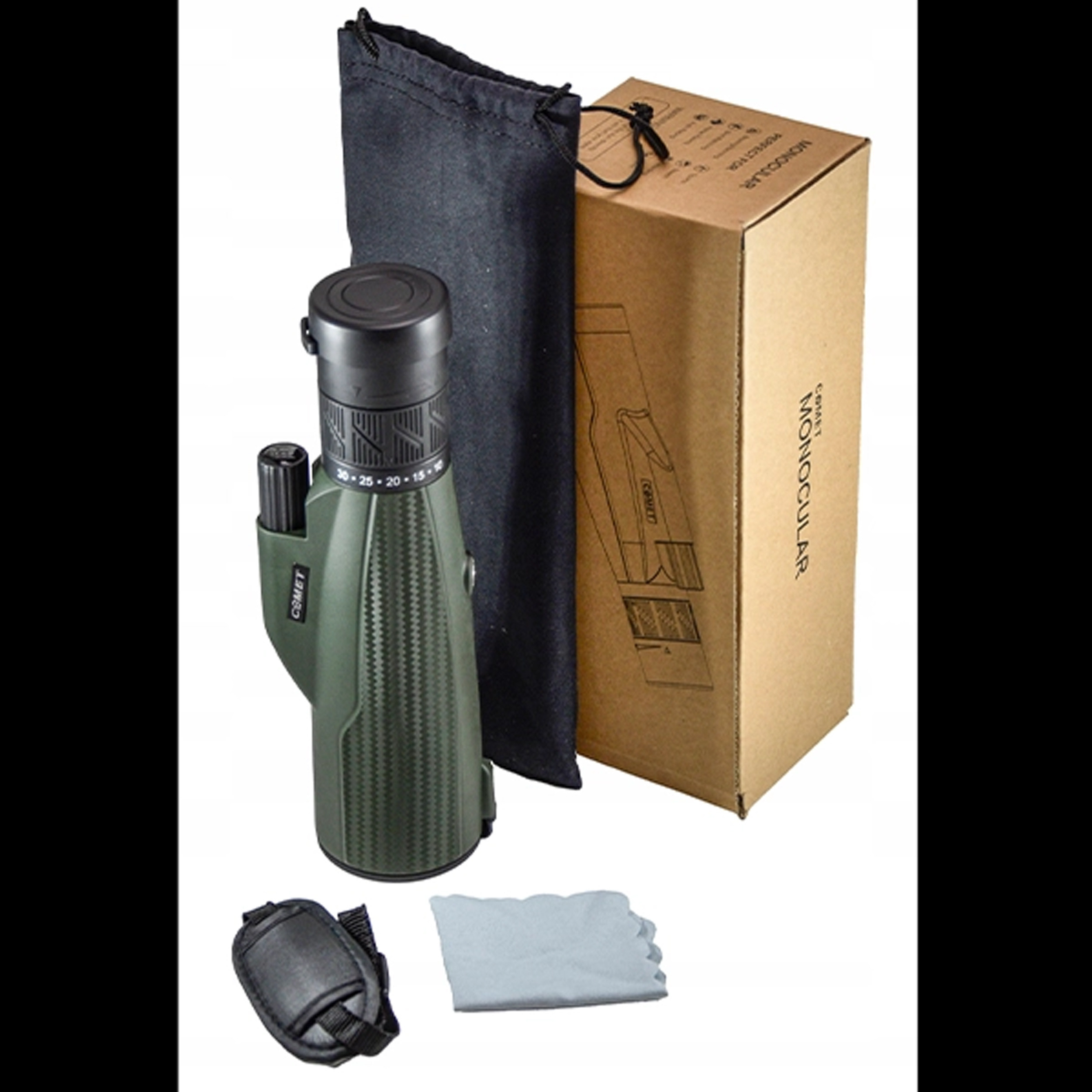 دوربین تک چشمی کومت COMET 10-30x50 دارای اصلاح نقص بینایی و تنظیم فوکوس است. پوشش ضد انعکاس کیفیت تصویر بهتری را ارائه میدهد. این دوربین دارای زوم تقریبی از 10 برابر تا 30 برابر است!!! این دوربین تک چشمی دارای جایی برای اتصال به سهپایه است (سهپایه شامل نمیشود) که به ما امکان میدهد اشیاء واقع در فاصله بسیار دور را مشاهده کنیم و در عین حال هیچ لرزشی در تصویر مشاهده شده وجود نخواهد داشت. این دوربین تک چشمی با یک بند دستی راحت و کاربردی و دو درپوش لنز ارائه میشود و برای سفر که در آن باید برای دیدن جسم سریع واکنش نشان دهیم، مفید خواهد بود. مونوکولار همچنین دارای پارچهای است که تجهیزات خود را در آن جابجا میکنیم. دوربین تک چشمی COMET 10-30x50 برای سفرهای توریستی، کمپینگ، مشاهده مناظر، حیوانات و رویدادهای ورزشی عالی است. این دوربین در هر شرایط آب و هوایی کار خواهد کرد.