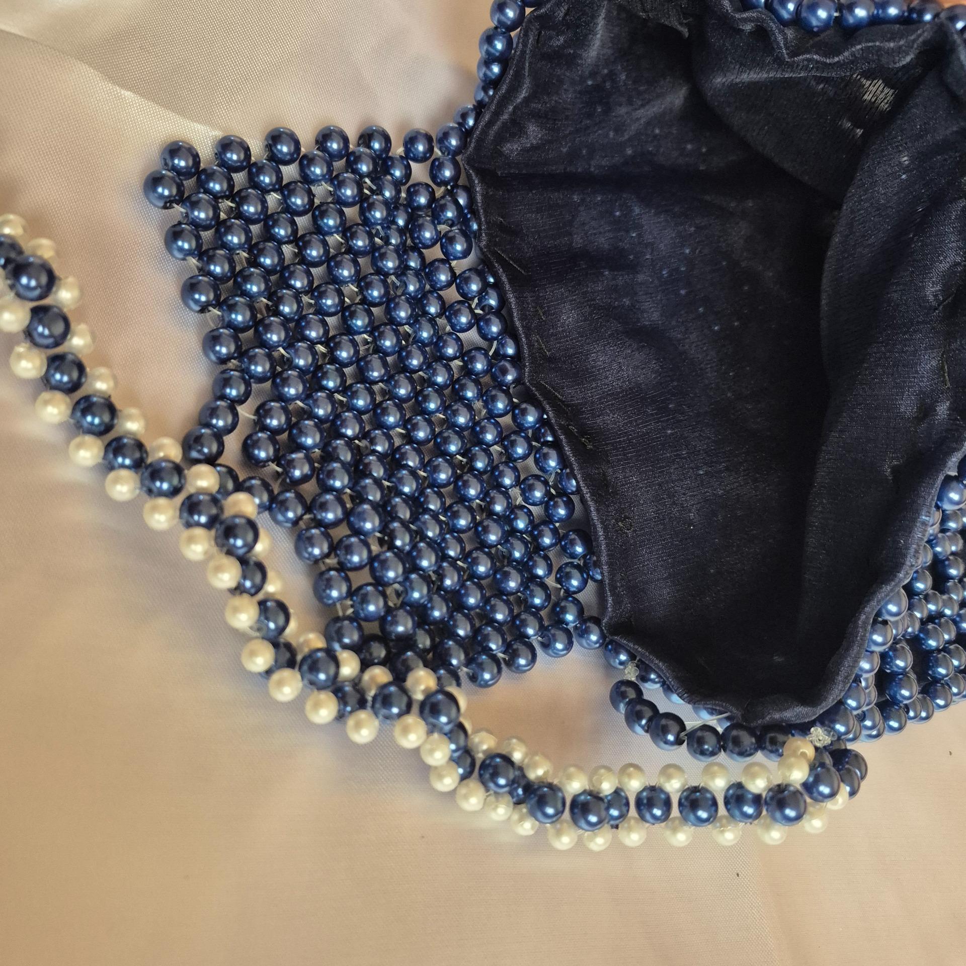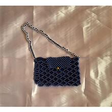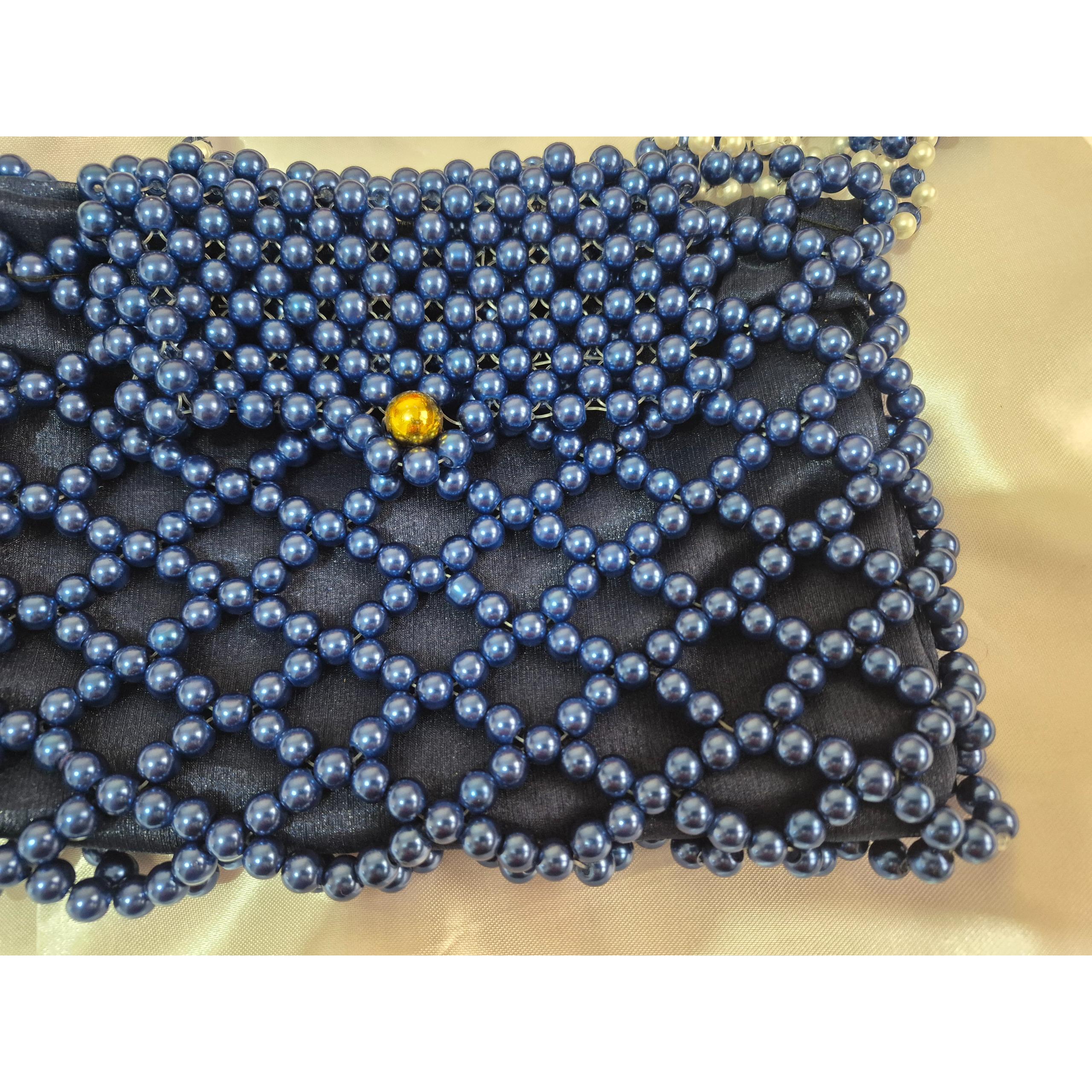 کیف مرواریدی زنانه مجلسی و روزمره آبی کهکشانی براق
