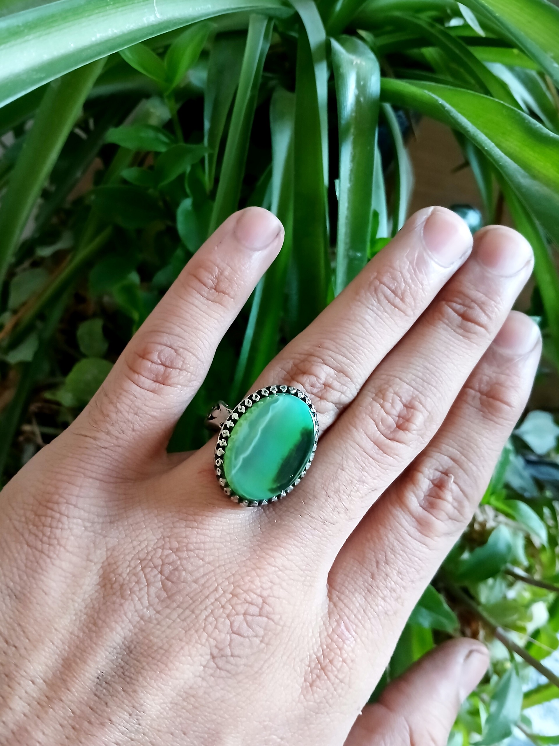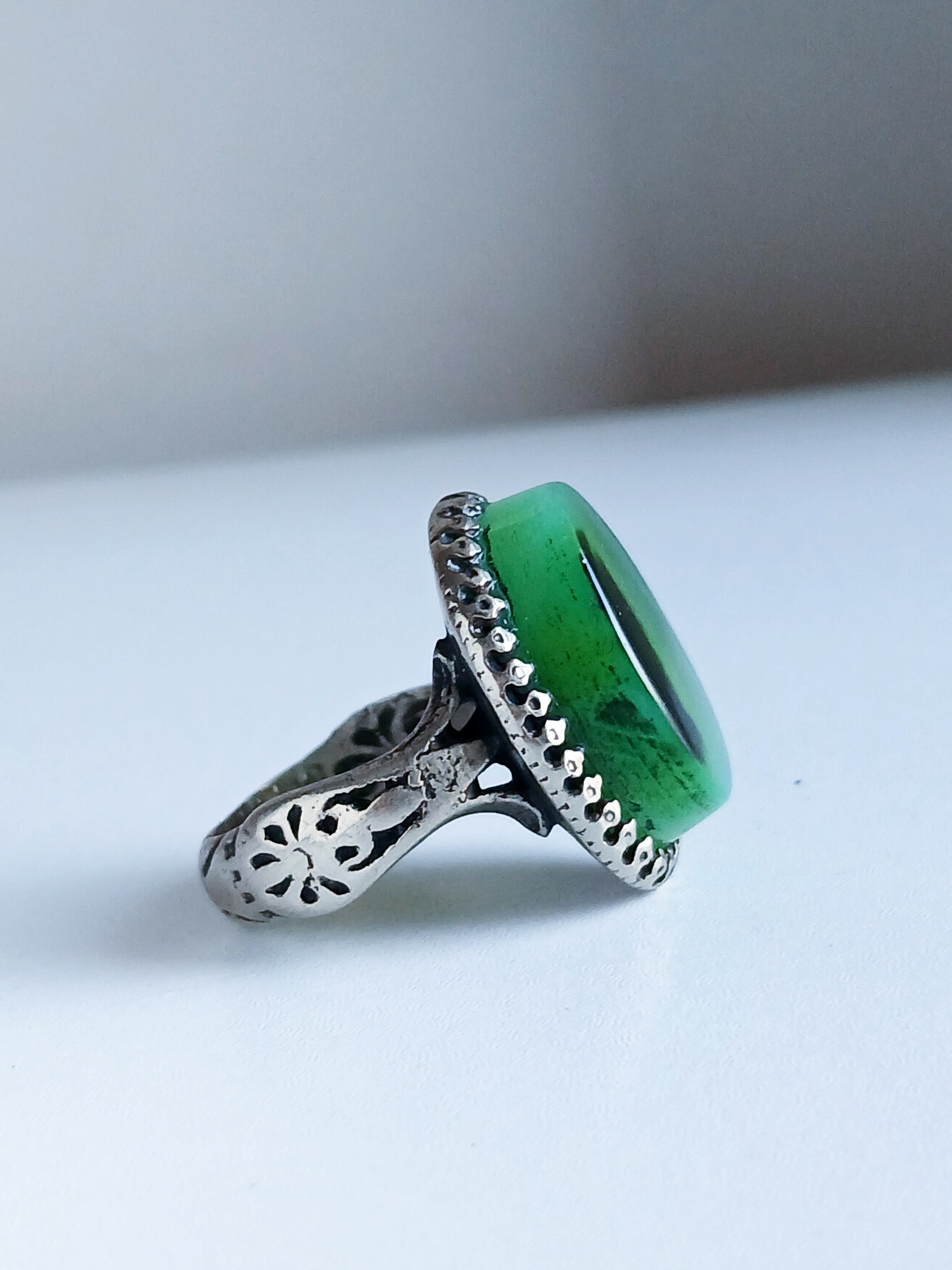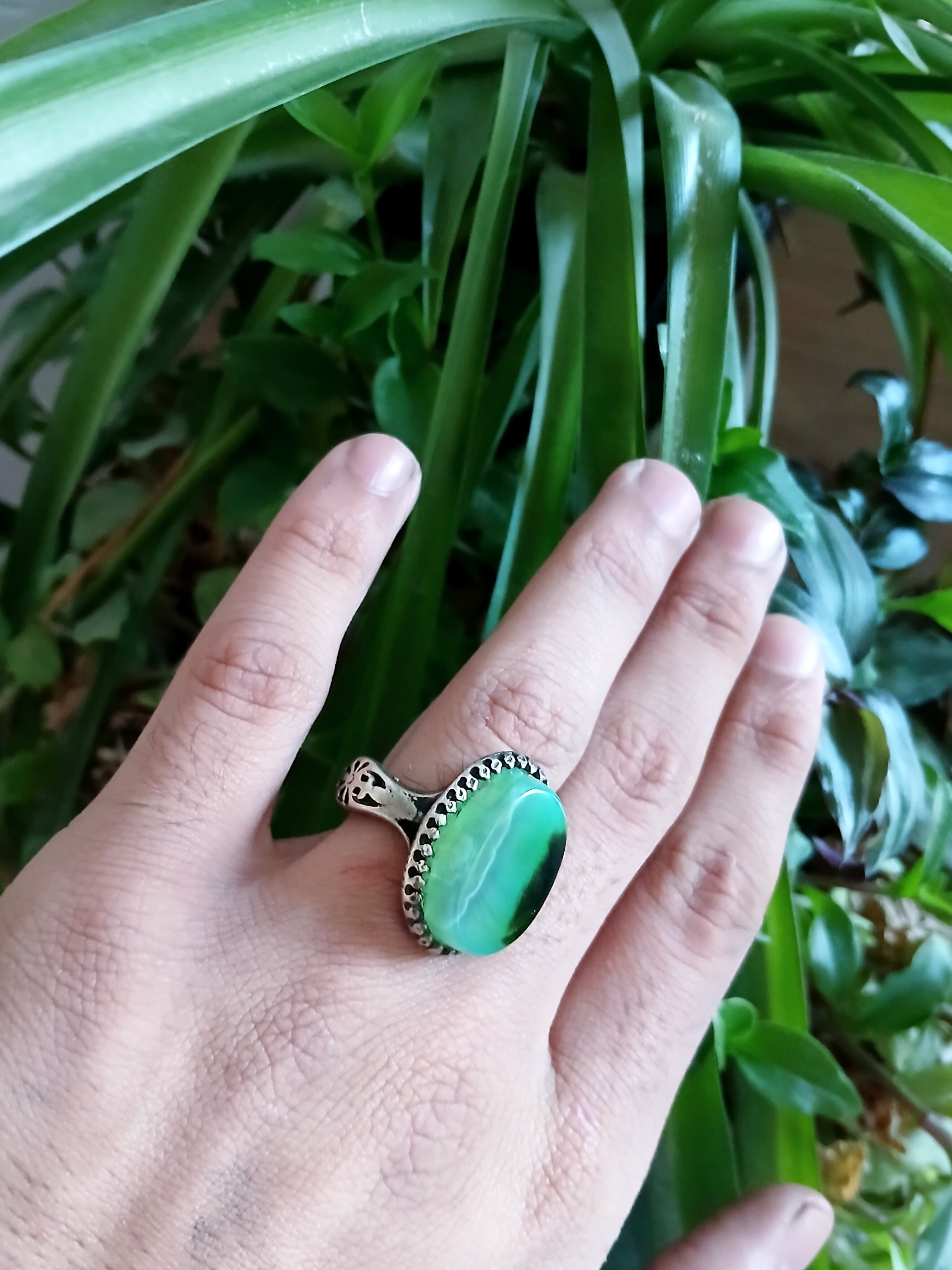 انگشتر عقیق سبز کاهویی رگه مشکی