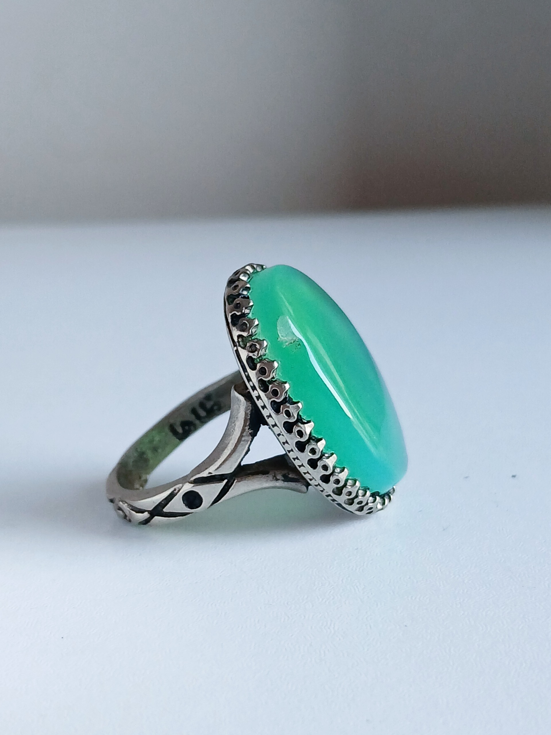انگشتر عقیق سبز آبنباتی درشت و ناب