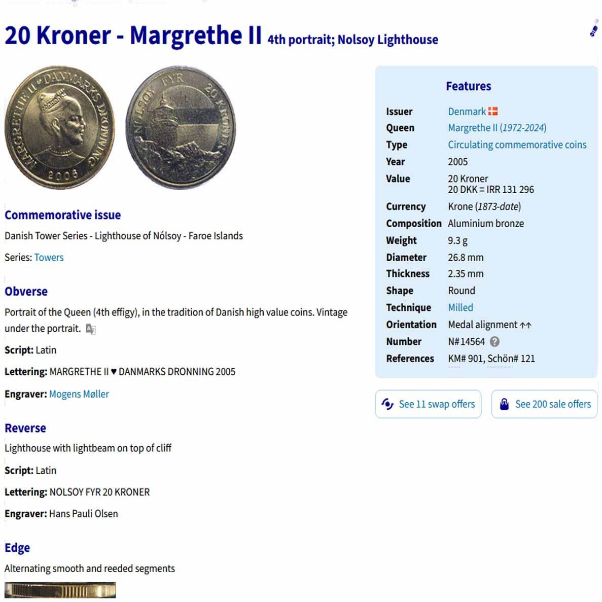 سکه یادبودی 20 کرون دانمارک 2005 (بسیار کمیاب)