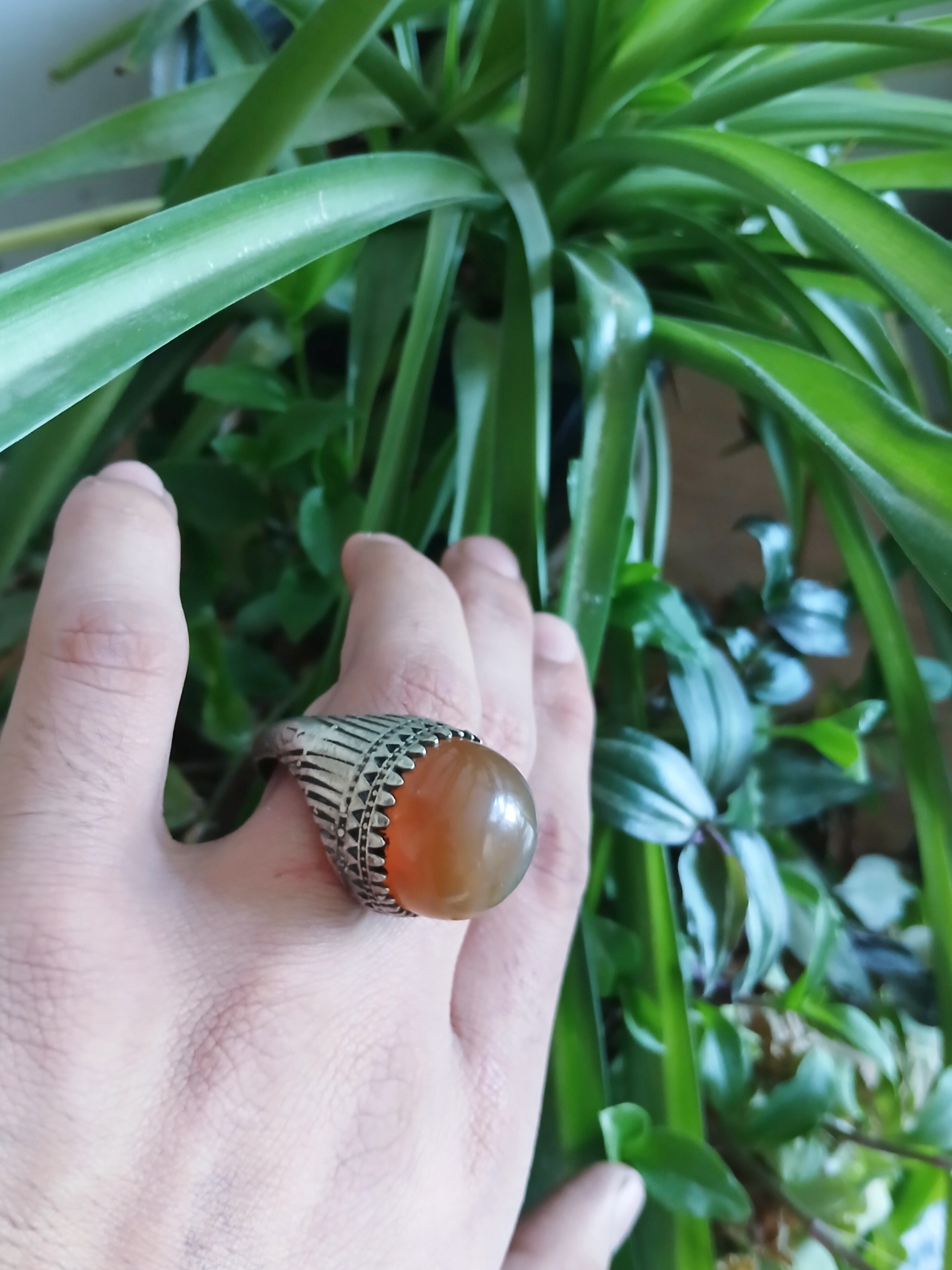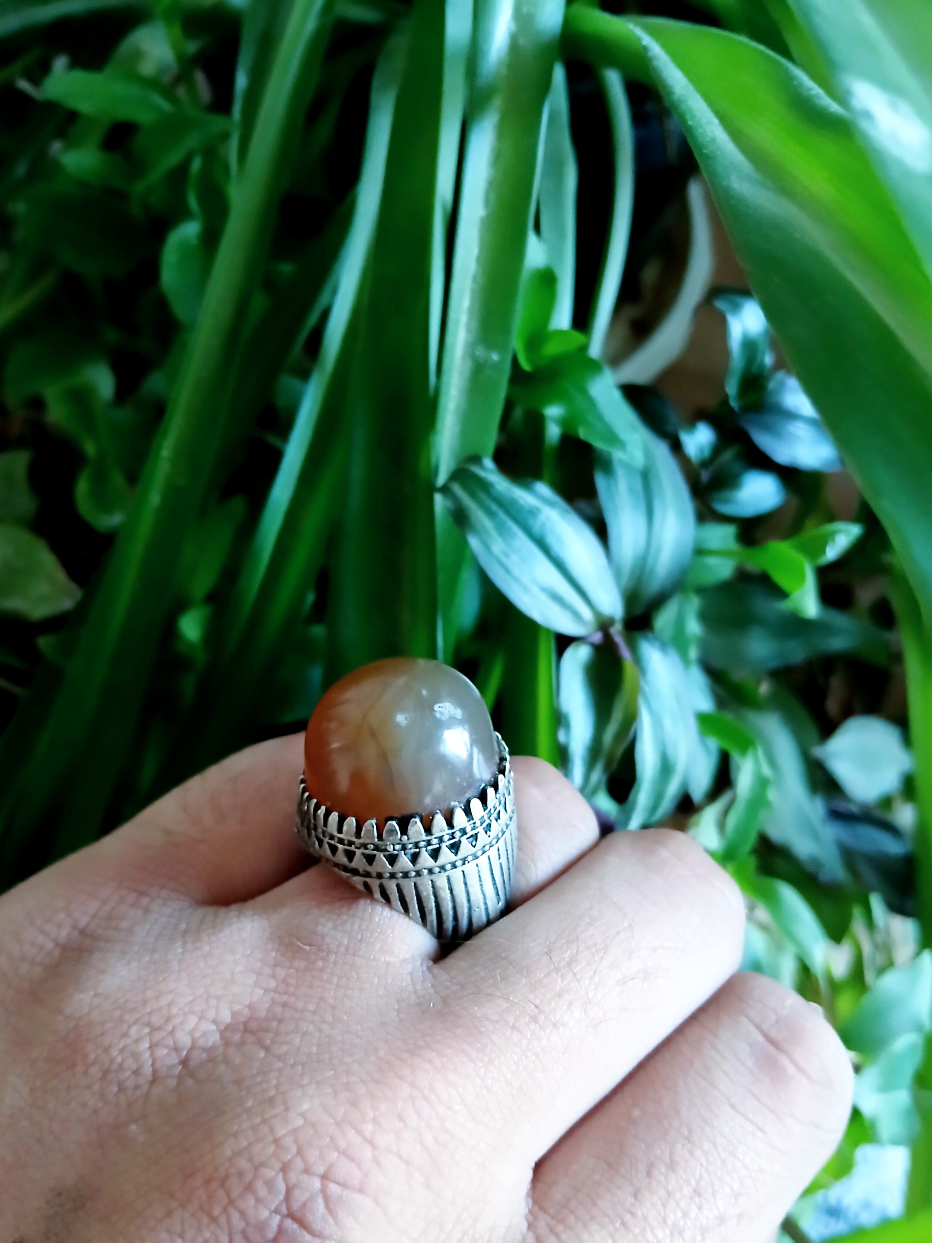 انگشتر عقیق جزع یمانی کله قندی گوشتی