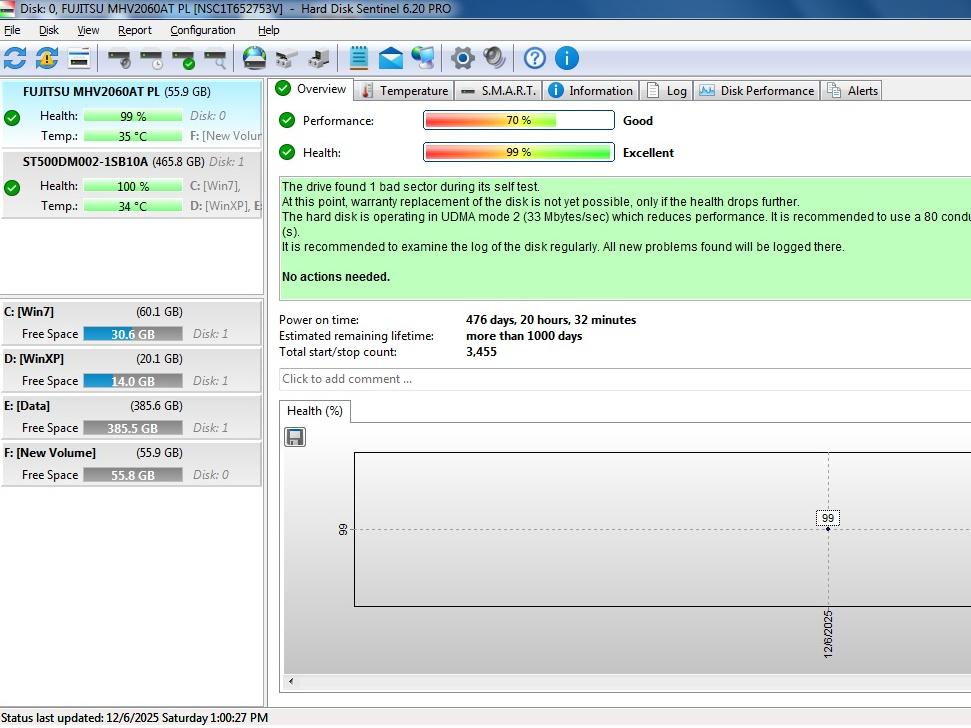 هارد لپ تاپ 44 پین 2.5 اینچ Fujitsu IDE 60GB