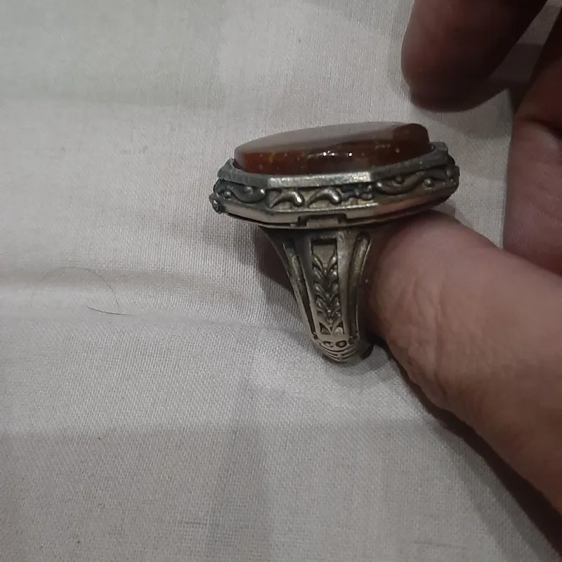 انگشتر عقیق سلیمانی قدیمی شجر ریز ریز براق توش هست و معدنی اصل هست و اندازه 62 هست