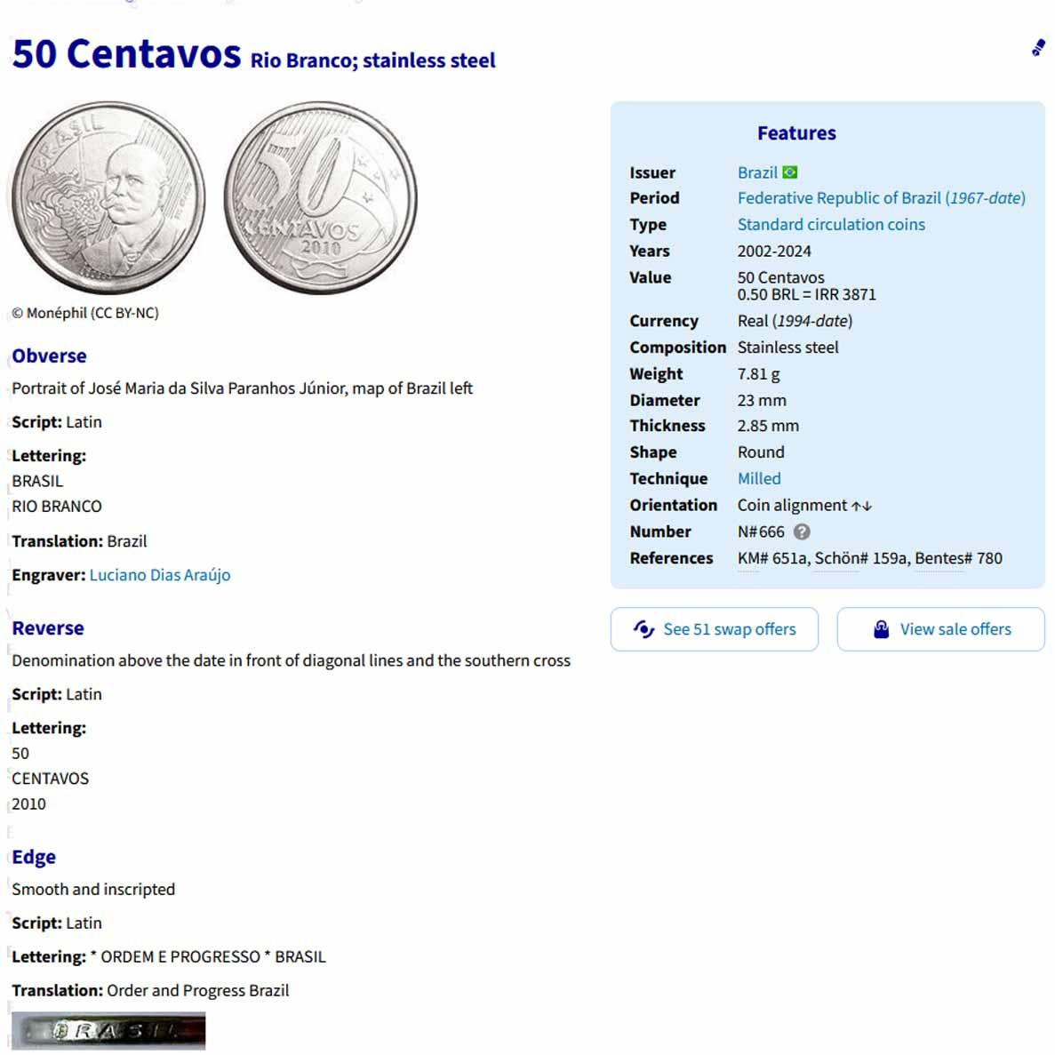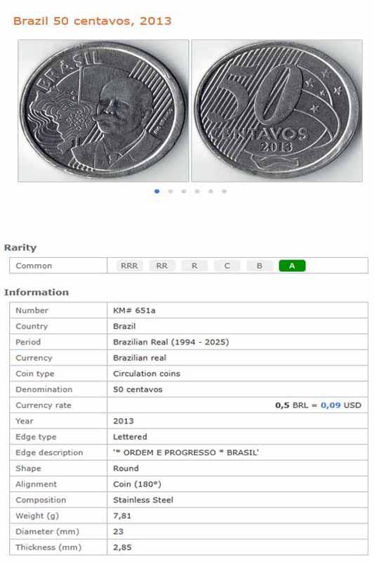 سکه 50 سنتاوس برزیل 2013 (کمیاب)