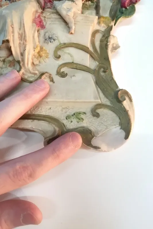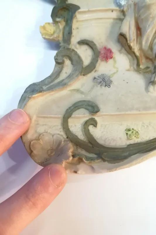 دیوارکوب قدیمی جنس از سرامیک سه ایراد در عکس کاملاً مشخصه در ابعاد 30 در 22 مطابق با تصویر اصلی قدیمی ارسال به سراسر کشور با بسته بندی مناسب