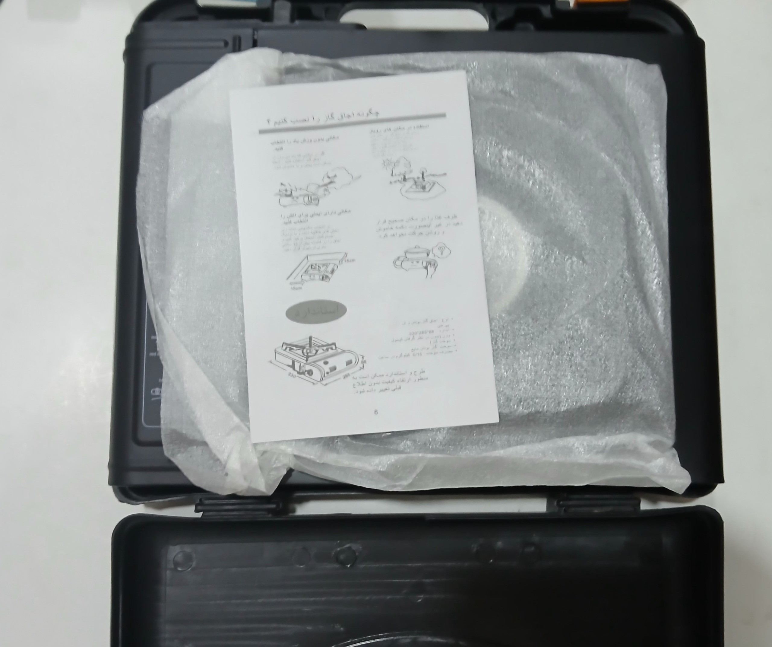 دارای تبدیل جهت اتصال شلنگ گاز در زمان استفاده از انواع کپسول - دارای کیف پلاستیکی برای حمل و نگه داری