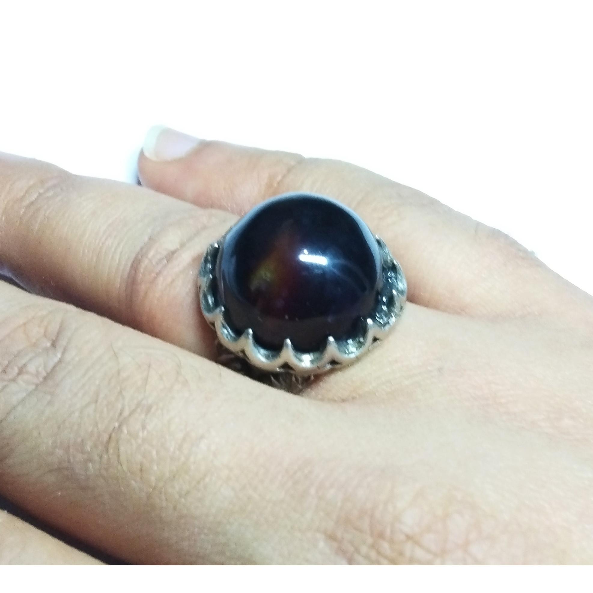 انگشتر فوق بینظیر عقیق کبدی خونی آبدار و نطفه دار، زایشی و فوق العاده جاذب. سنگ صدرصد معدنی و بی مشابه.