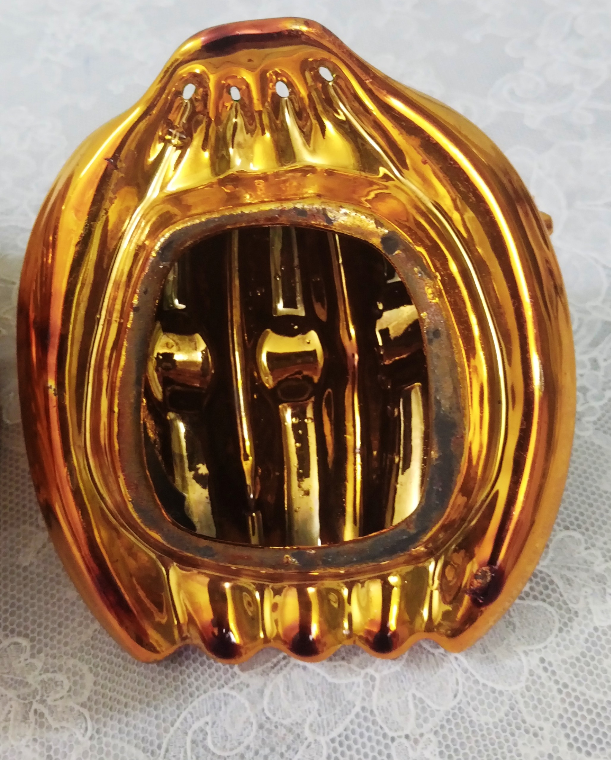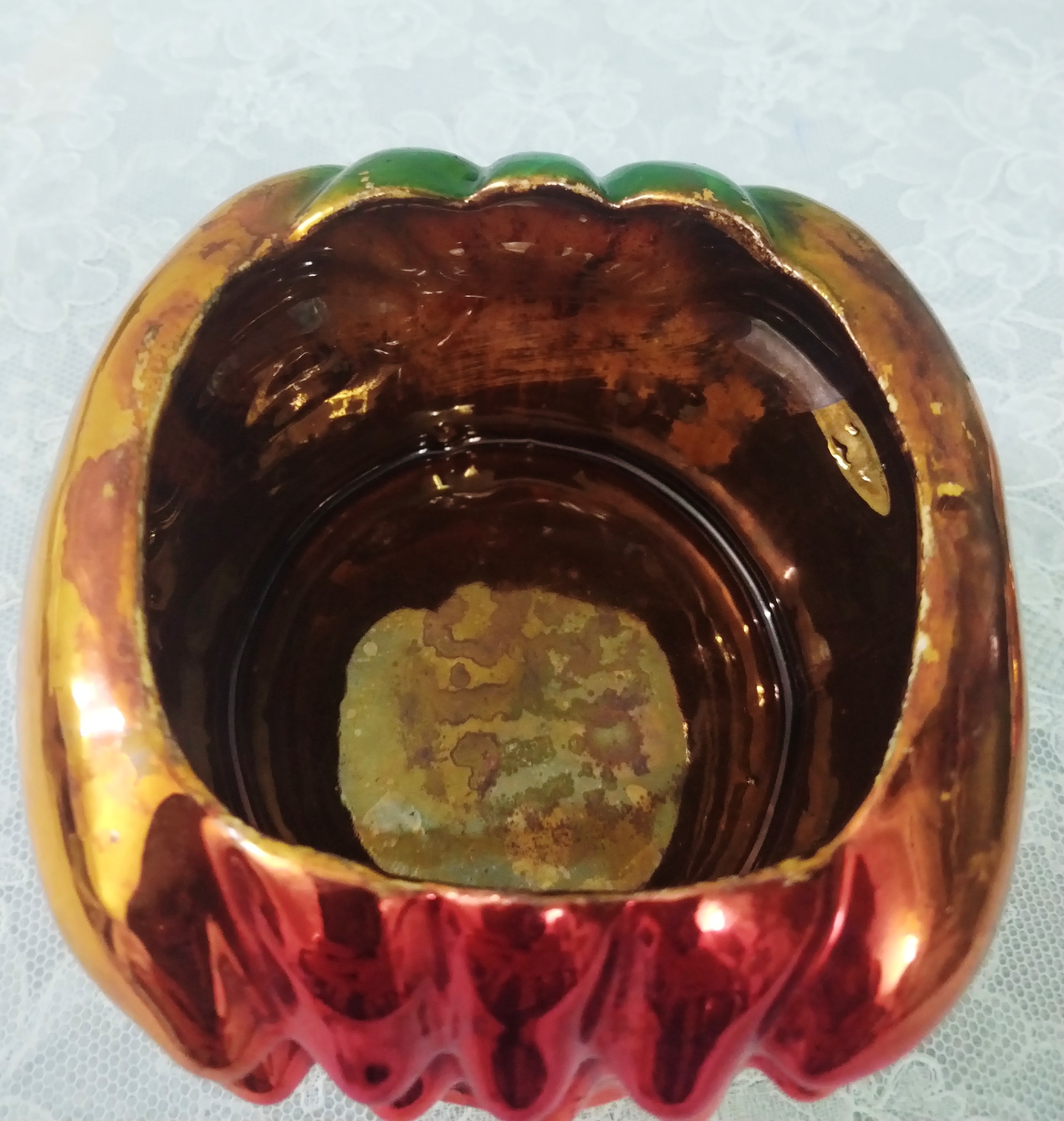 در بعضی قسمت ها رنگ طلایی به قهوه ای تبدیل شده بیشتر در قسمت لبه ظرف که زیر درب قرار میگیره و قسمت پایه این مورد دیده میشود