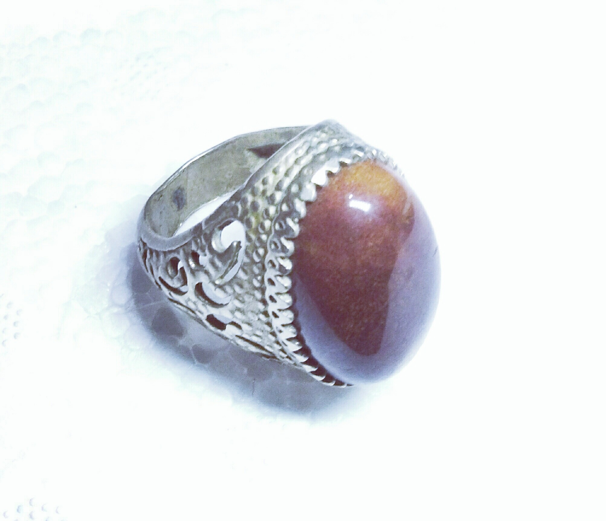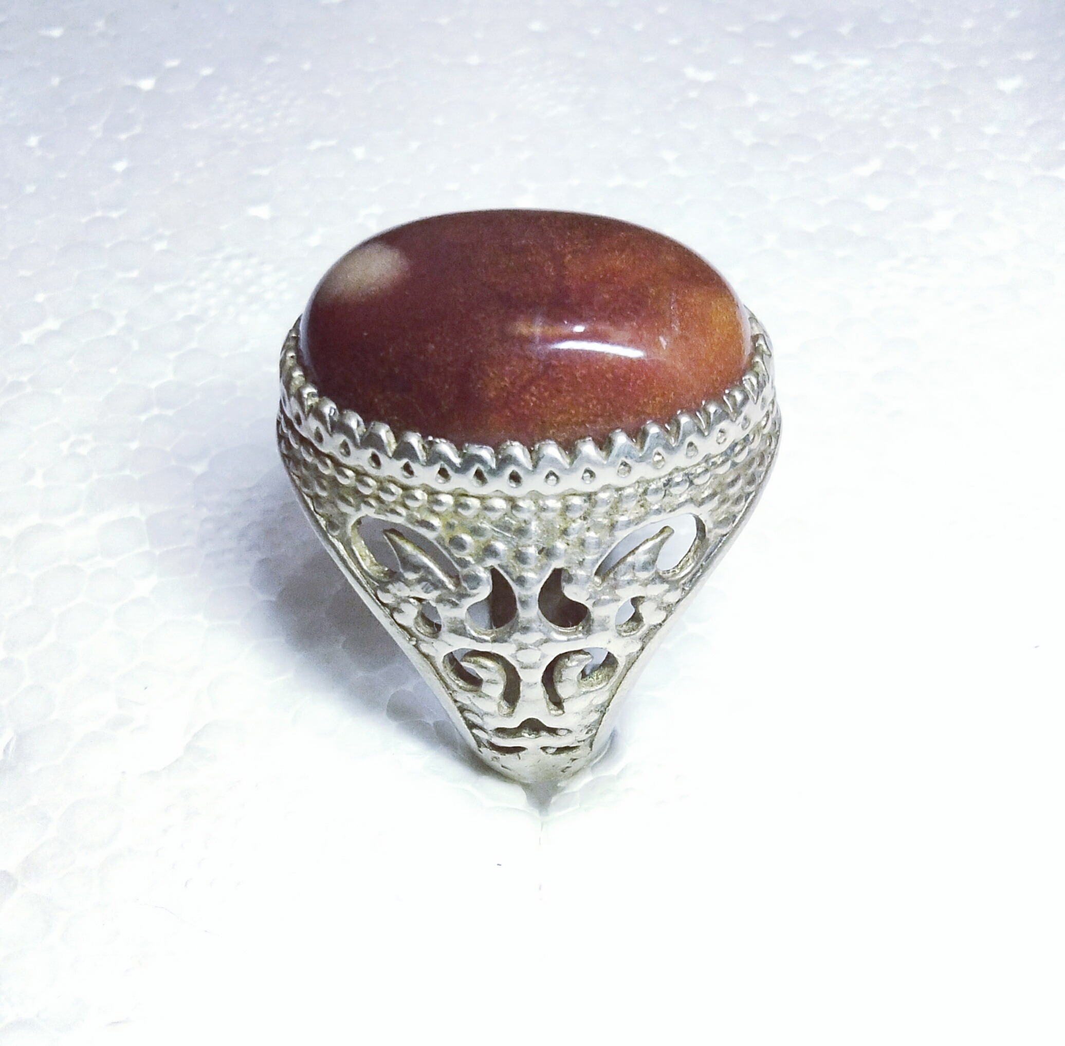 انگشتر عقیق دارچینی بسیار زیبا و خوش رخ و تک. با رکاب طرحدار و بسیار باکیفیت عیار74