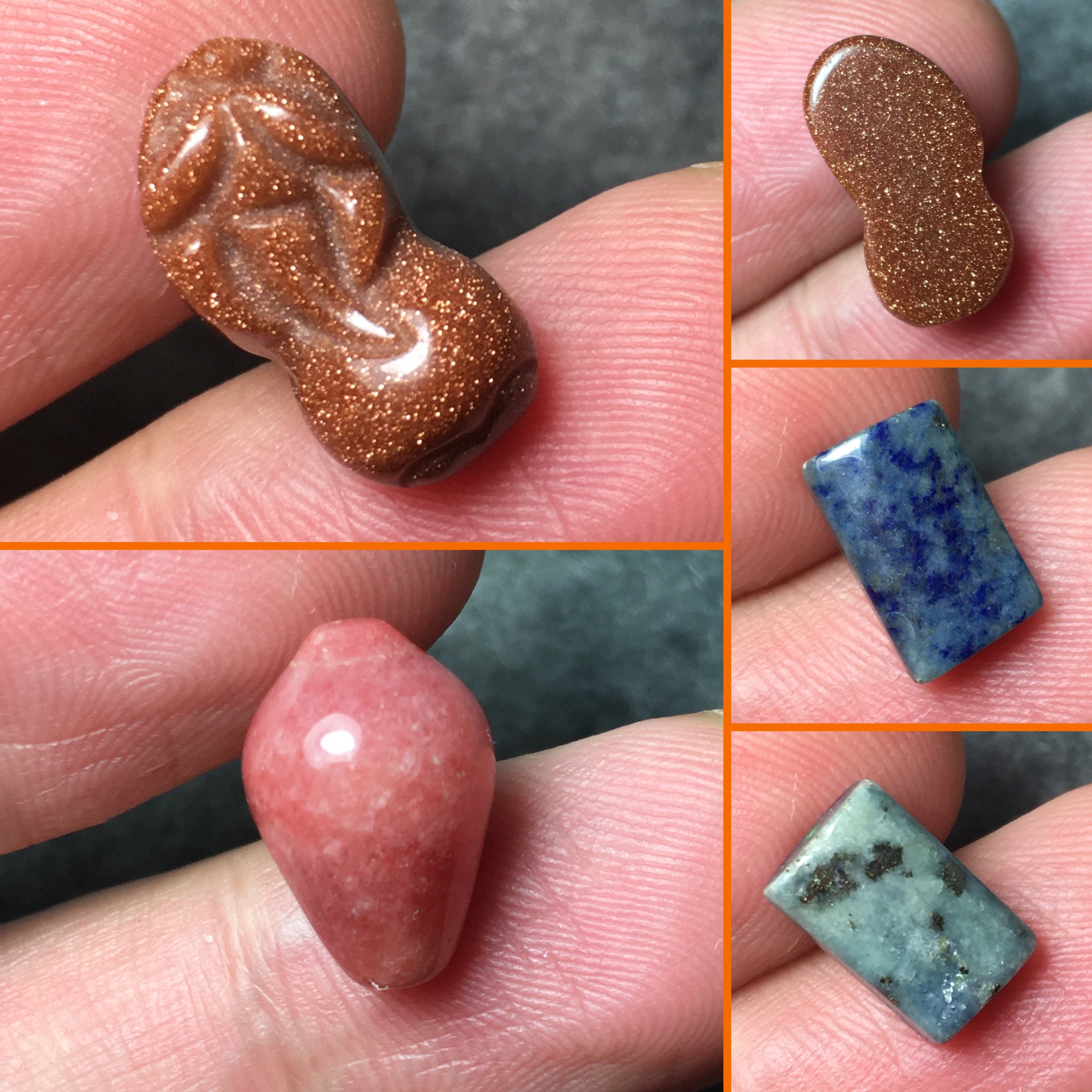 مجموعه سه سنگ تزئینی تراش خورده رودونیت، دلربا و سودالیت