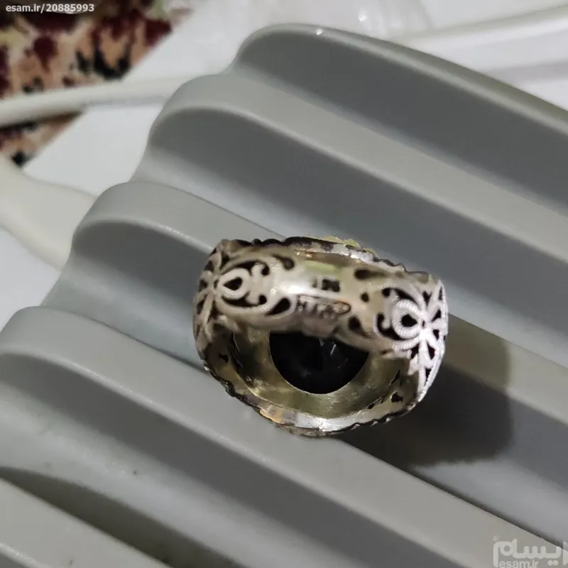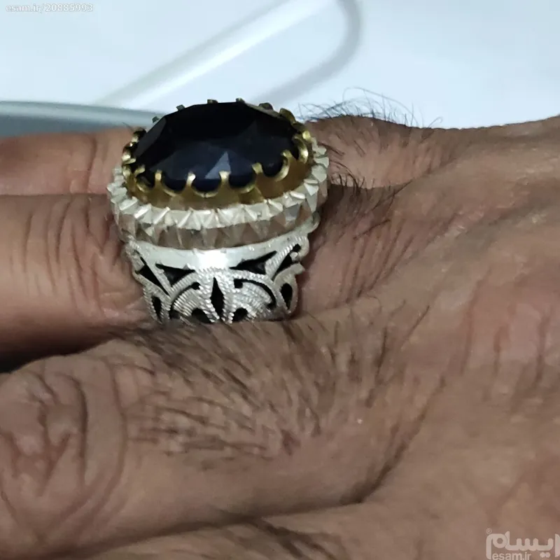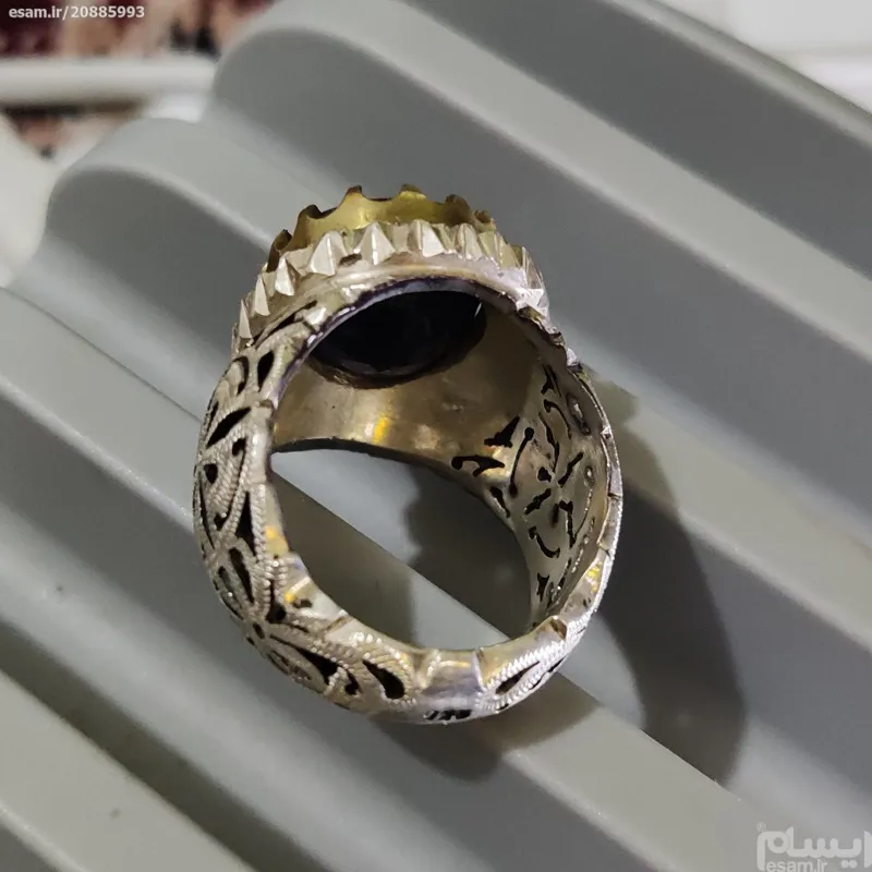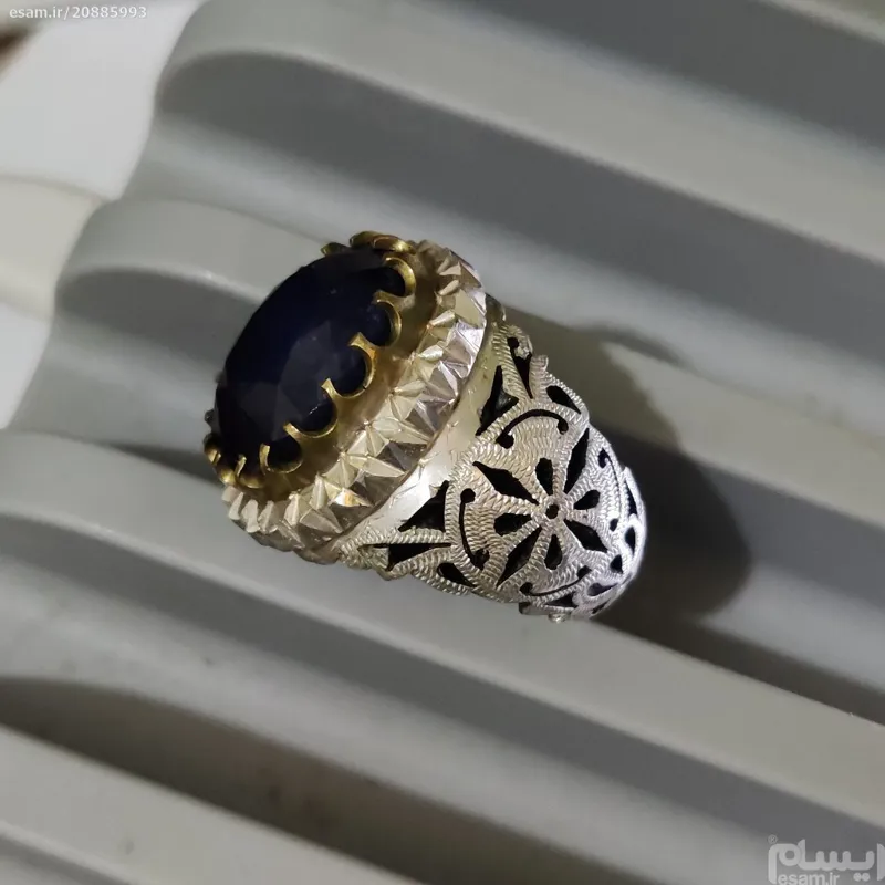 انگشتر یاقوت بنفش اصل کار دست با مهر سازنده آینه کاری و آره کاری دقیق و مجلسی وزیبا
