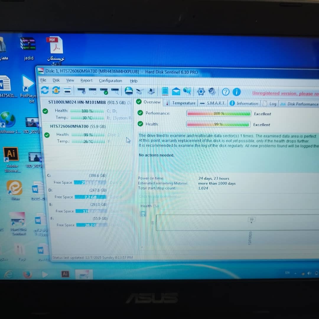 هارد لپ تاپ IDE 60G سلامت 99 درصد