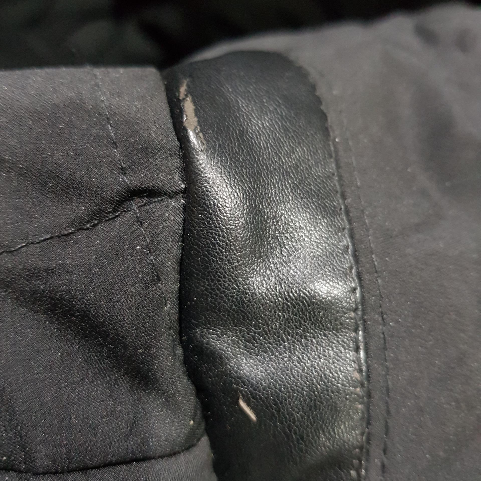 طبق عکسه اخر پشت گردنه کاپشن یه نوار چرم کار شده که یکی دو جاش ساییدگی ریز داره ولی حتما بعد از خرید بدین خیاط یه نوار برزنتی دوخت کنه بهش که ساییدگیها بیشتر نشه (با هزینه 80 تا 100 تومن که توی قیمت لحاظ میکنم)
