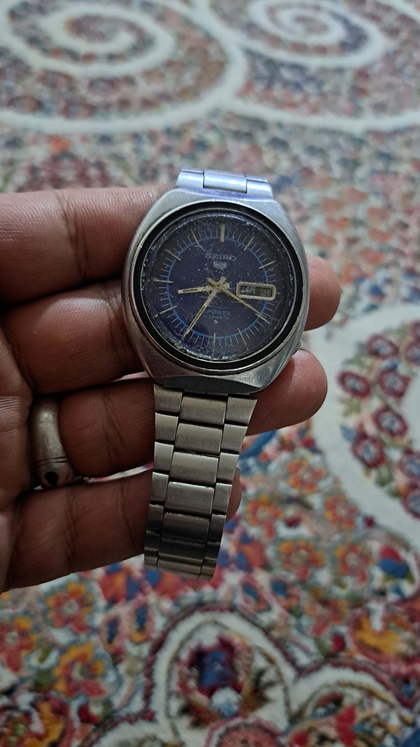 ساعت سیکو جوانان اسپرت اصل و قدیمی،باقدمت 60سال بسیار سالم و دقیق کارمبکنه،و صفحه داخلی شفاف و بدون کوچکترین خط و خش،فقط شیشه اش ساییده شده خف شده وتقویمش عوض نمیکنه.این ساعت حداقل 12میلیون پولشه.من خودم زنگ زدم ساعت سازیهای تهران تواینترنت سرج کنید گفت شیشه اش رو شفاف میکنه 300هزار وسرویس هم مبکنن 500هزار ،ولی ما شهرستانیم و ساعت سازی نداره ابنجا و من به همین شکل باضمانت گفته هام میفروشم.ببینید دیگران چقد قیمت زدن .الانم به همین شکل دارم استفاده مبکنم. و باشــــــه خیر خریدار