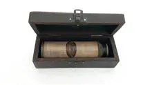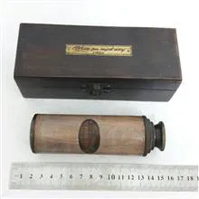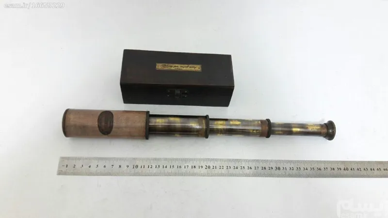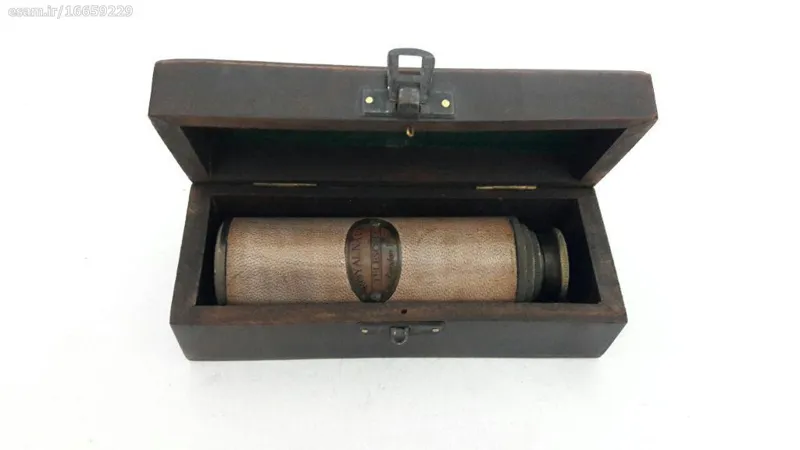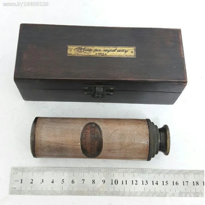 دوربین برنزی انگلیسی تاریخدار 1917 همراه جعبه چوبی مارک Royal Navy سالم (طرح قدیم میباشد) زوم متوسط طول دوربین در حالت باز 38 سانت طول جعبه 16 سانت وزن 500گرم ساخت هند