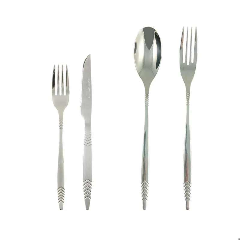 هر سرویس دارای 12 عدد قاشق غذاخوری و 12 عدد چنگال غذاخوری و 12 عدد کارد میوه خوری و 12 عدد چنگال میوه خوری می باشد.