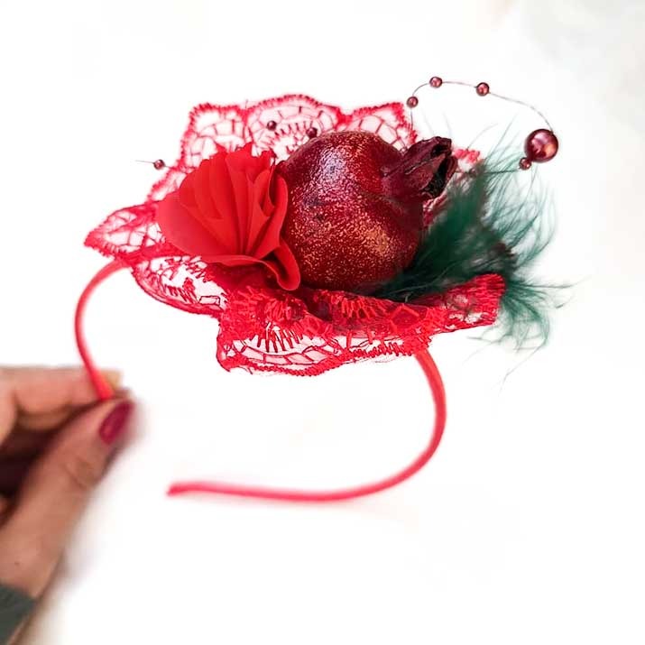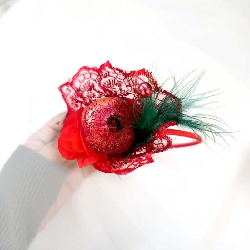 تل های یلدایی با تزیینات فوق العاده پاییزه گل ، انار ،پر سبزرنگ ویه توری قرمز رنگ که زیبایی خاصی به این تل سر داده اند. بسیار سبک هستن و روی مو قرار میگیرند.