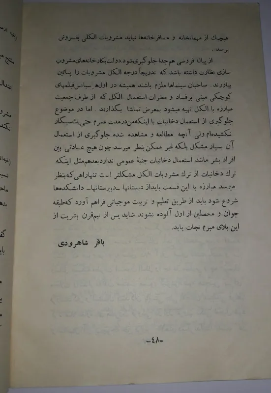 قدمی در راه مبارزه با استعمال نوشابه های الکلی و مواد مخدره