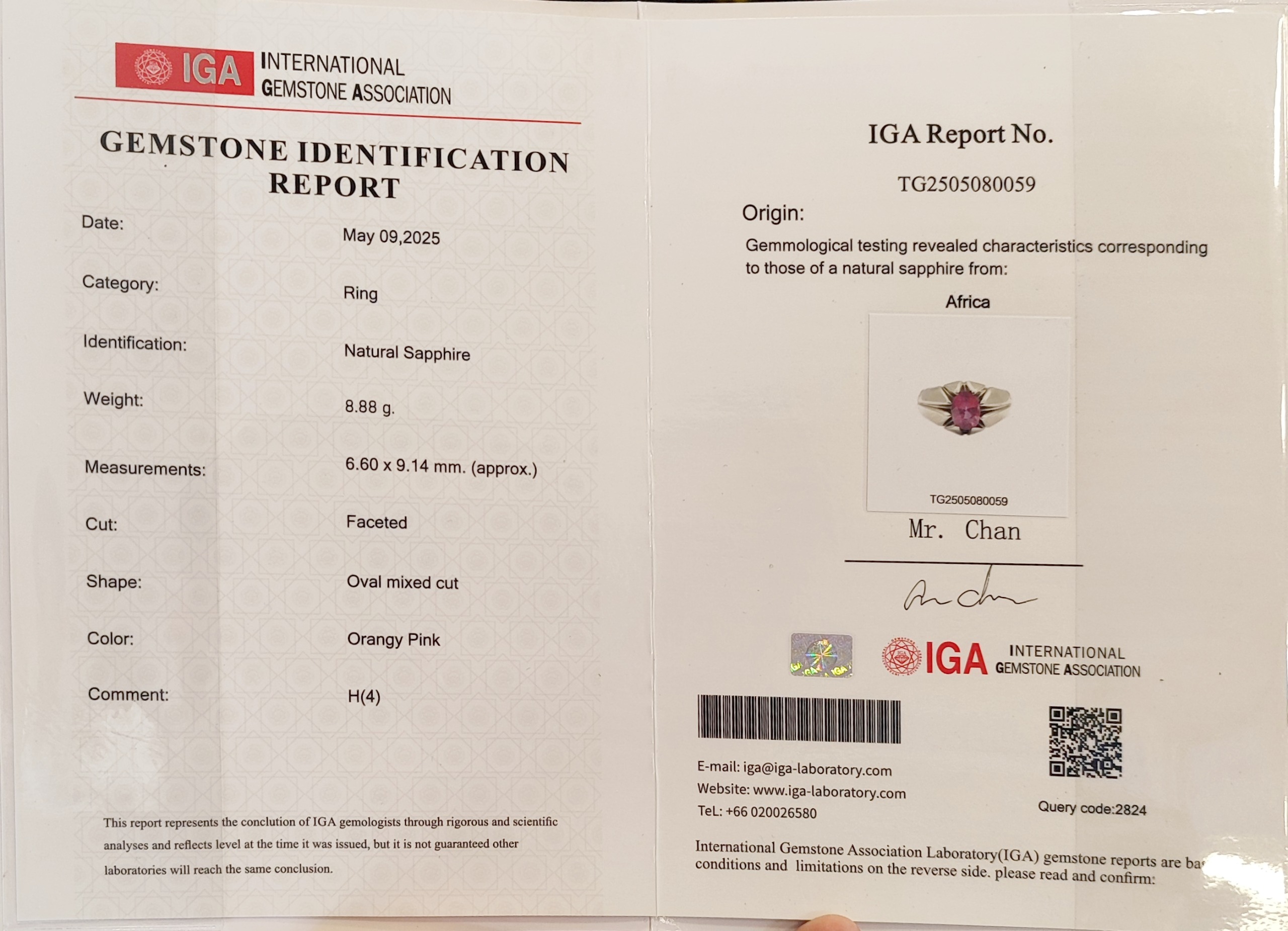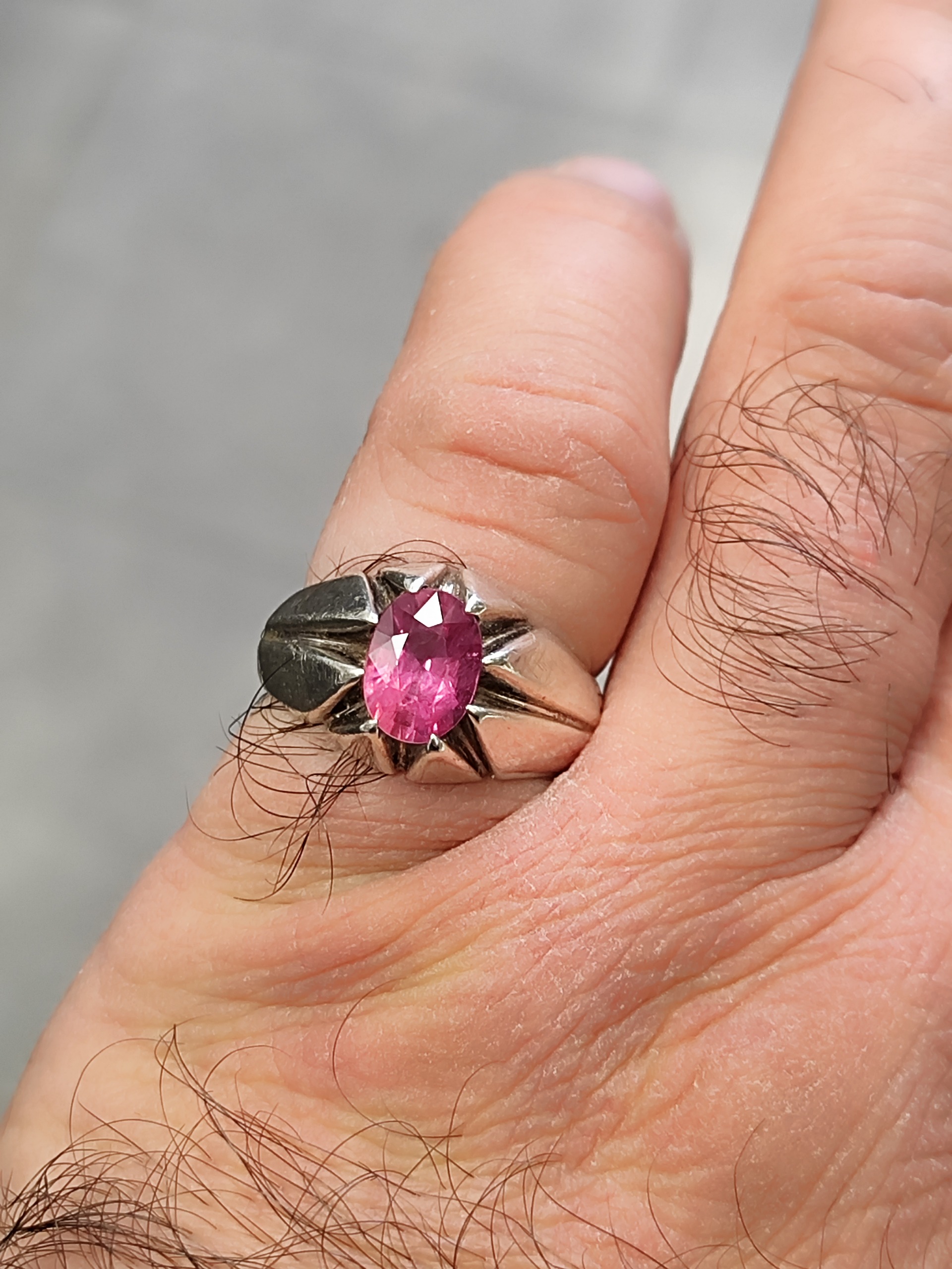 انگشتر یاقوت صورتی افریقا طبیعی وزن 3 قیراط با شناسنامه معتبر رکاب نقره دستساز سایز 58