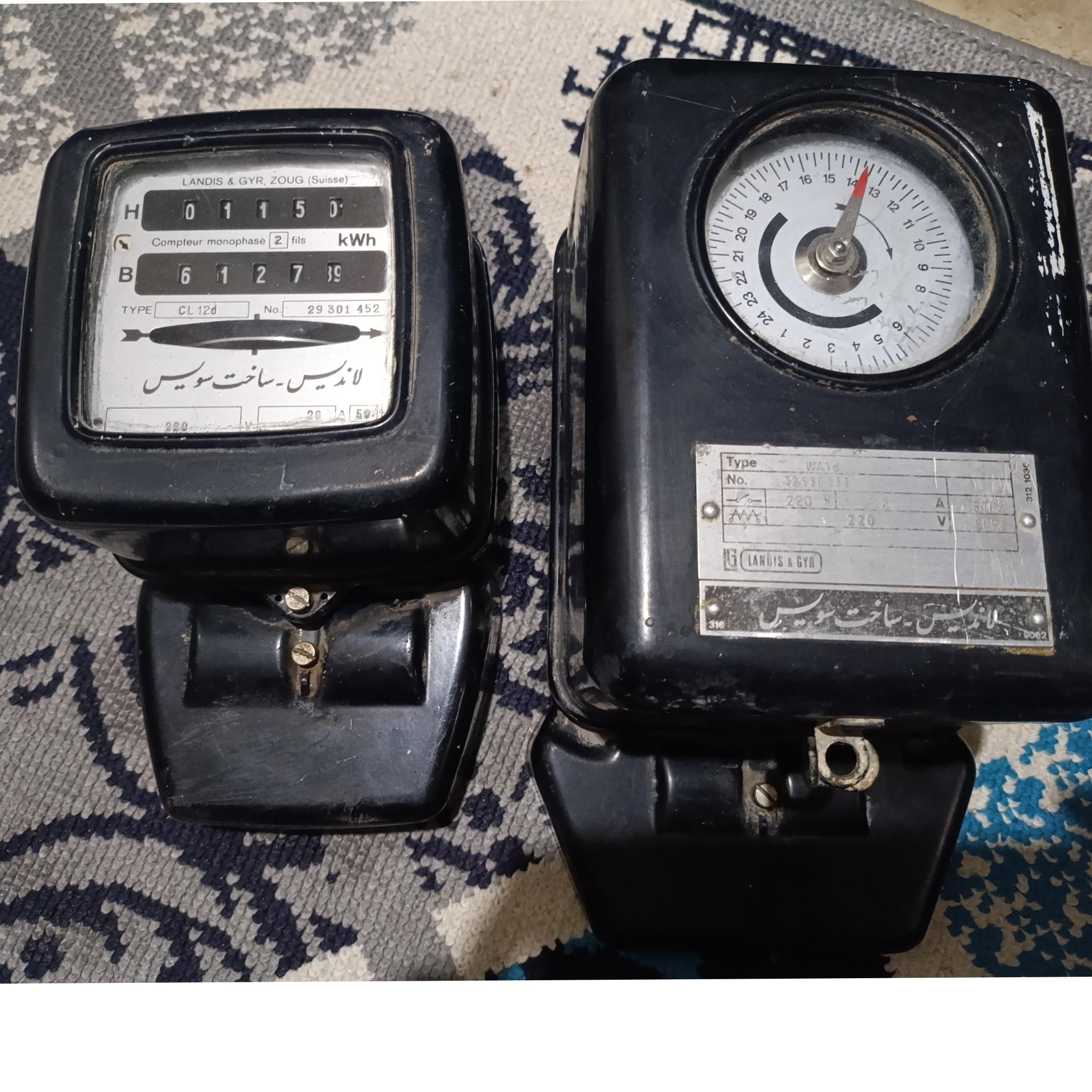 دو عدد کنتور برق قدیمی لاندیس سویسی قدیمی قبل از انقلاب اسلامی