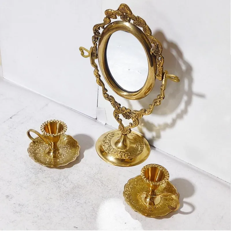 آینه شمعدان برنجی هندی با کیفیت بسیار بالا و سنگین