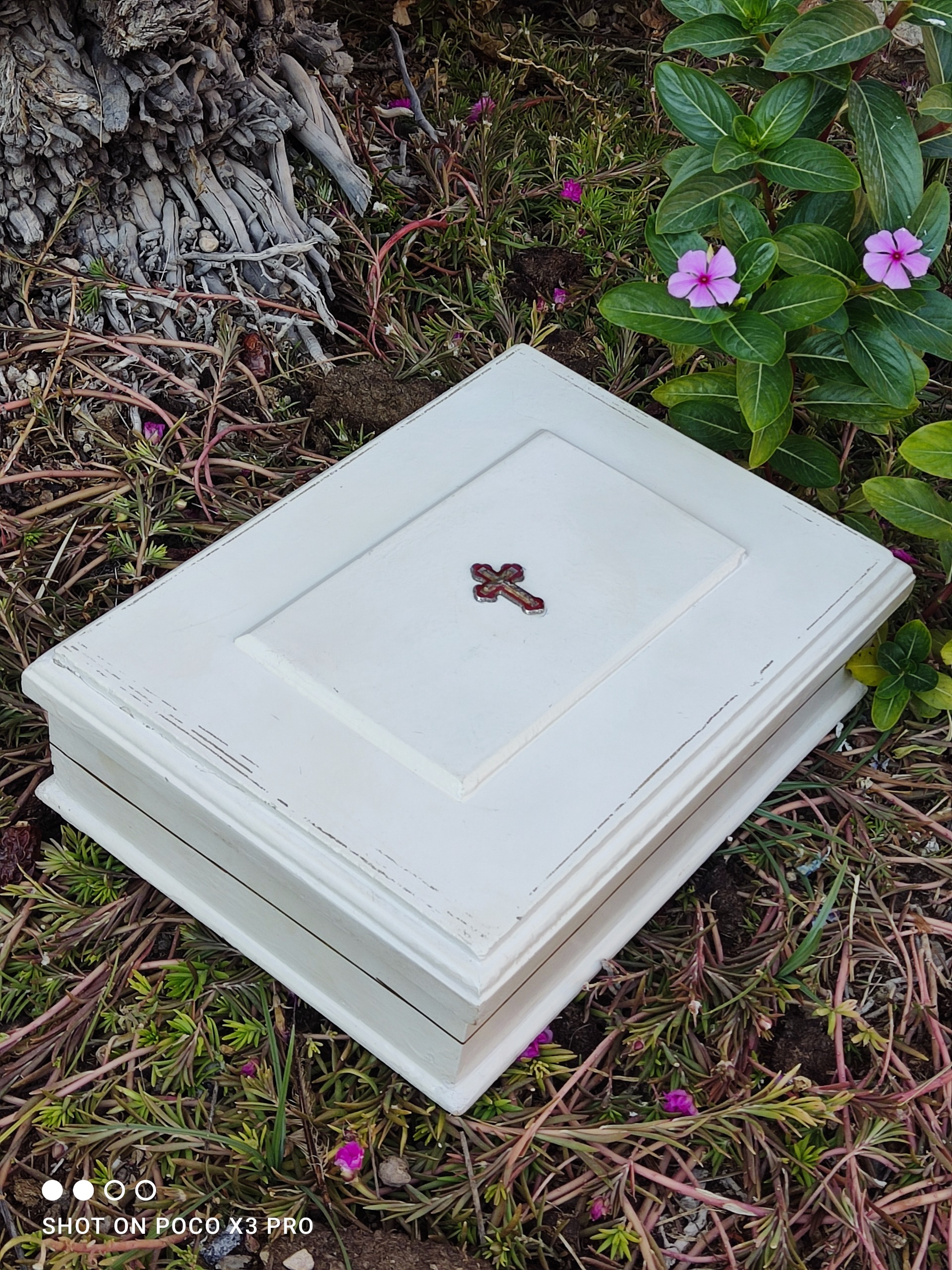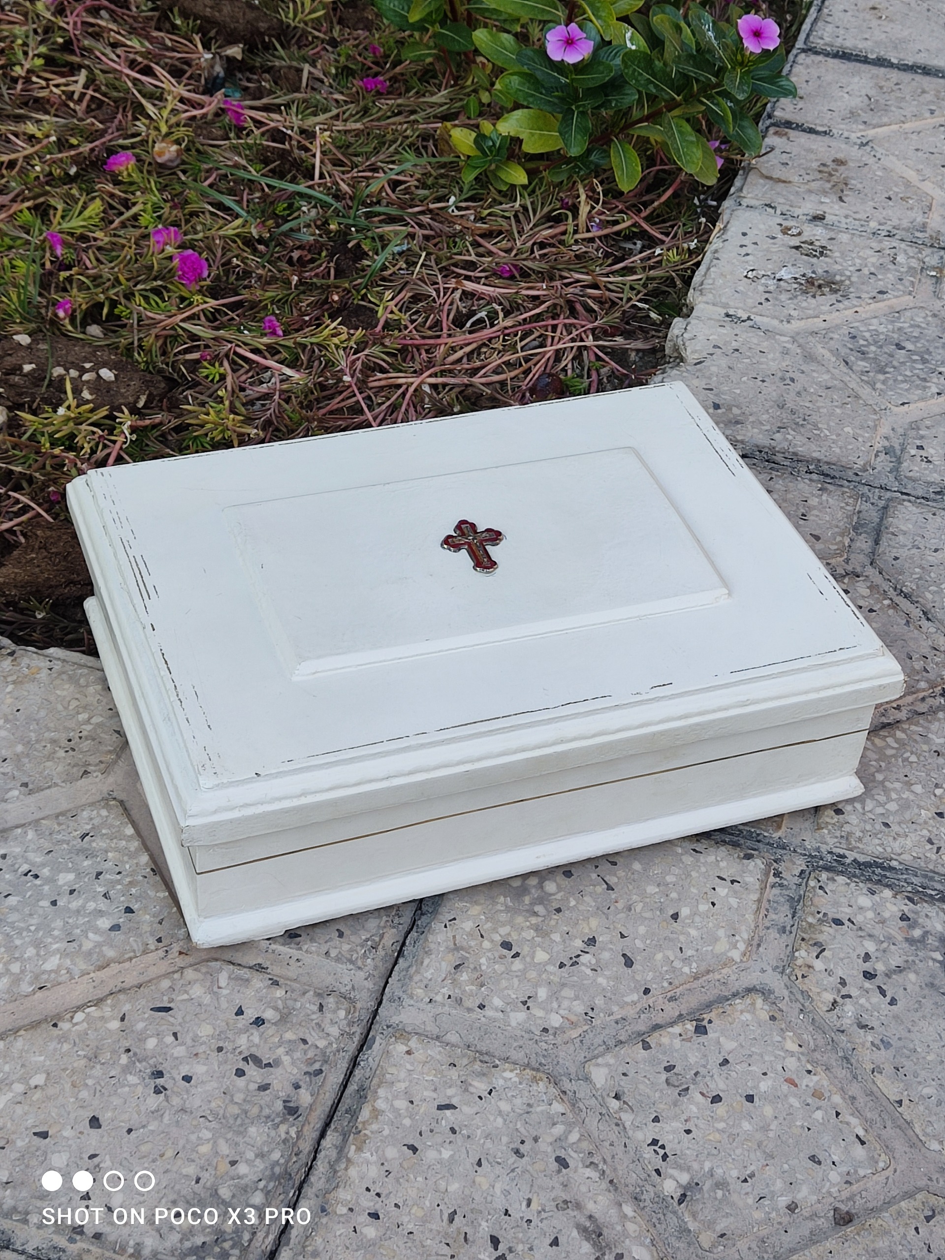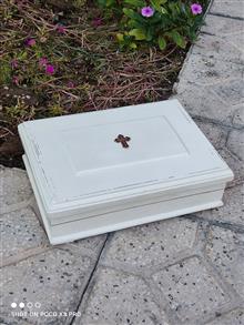صندوقچه چوبی قدیمی مطابق تصاویر این صندوقچه چوبی مربوط به زمان پهلوی اول هست بسیار تمیز و بکر داخلش از بیرونش زیباتر بیرونش از داخلش زیباتر بی نهایت محکم و جوندار و سنگین حدوی 35/25 طول و عرضشه انذازه نگرفتم همین حدودا هست ارتفاعشم حدودی هشت سانت