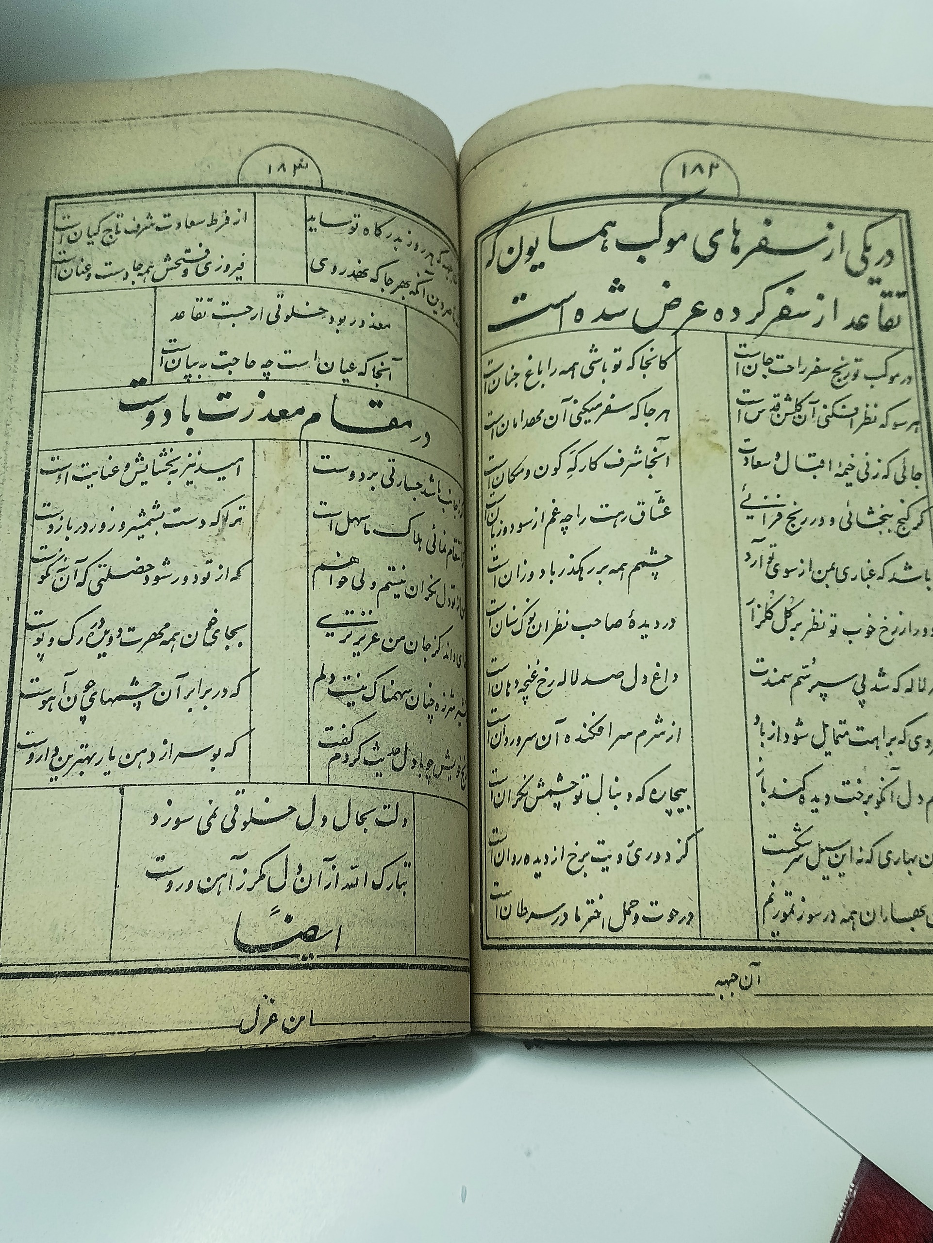 و بعد دیوان مظفری و بعد از آن دیوان ناصری آورده شده اول بصورت نثر و دو نسخه دیگر بصورت نظم میباشد.اگر سوالی در رابطه با کتاب و یا تصاویر بیشتری لازم بود بفرمایید تا ارسال شود با تشکر