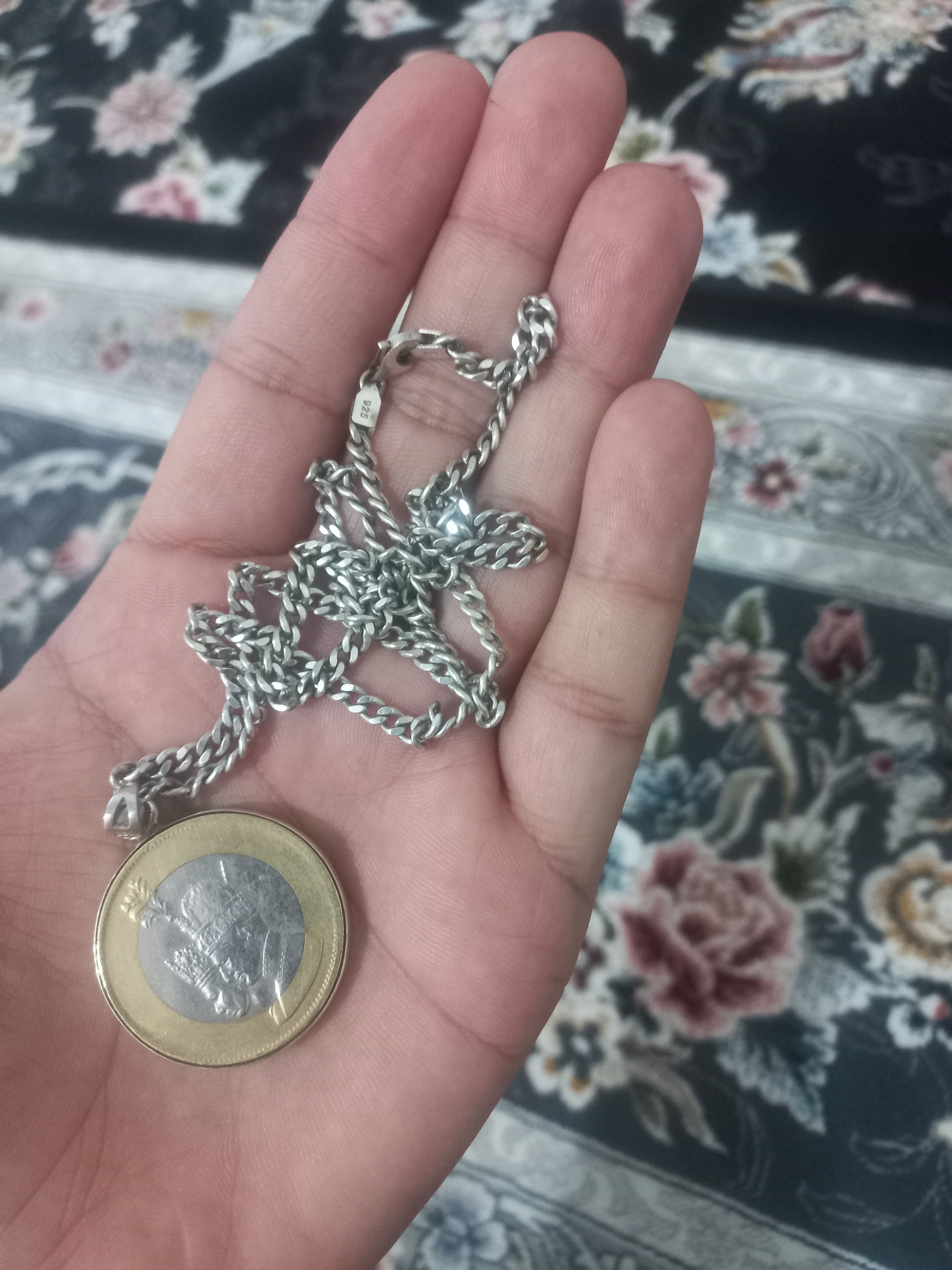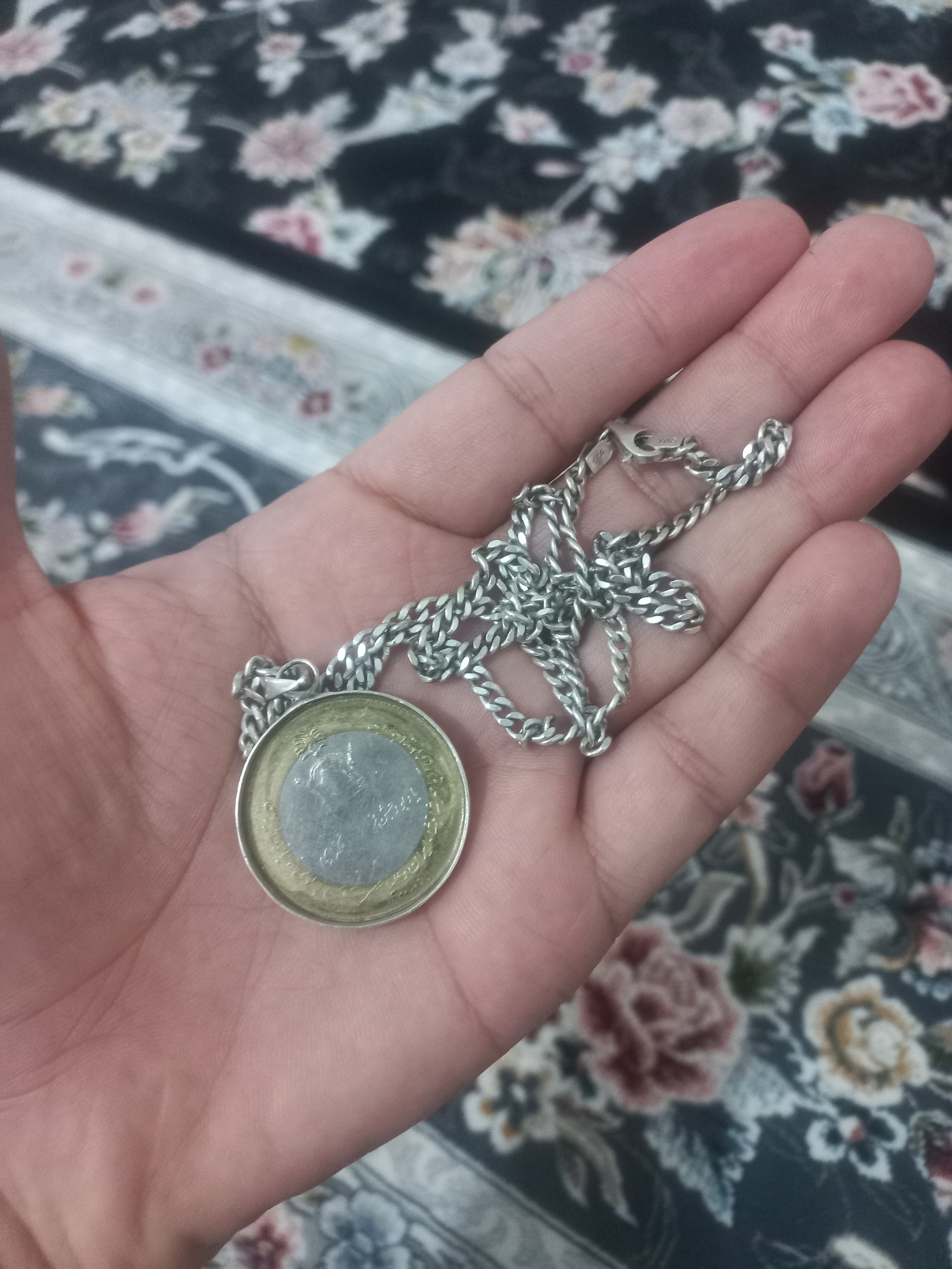 سلام خدمت کاربران محترم زنجیر و پلاک نقره به فروش میرسد وزن زنجیر 17 گرم و نیم و پلاک هم یه سکه ی قدیمی با طرح محمد رضاشاه و فرح و جشن های دوهزار و پانصد ساله که دورش را با نقره قاب گرفتم و تبدیل به پلاک کردم کار خاص و بینظیر کسی خواست در خدمتم قیمت 6 میلیون