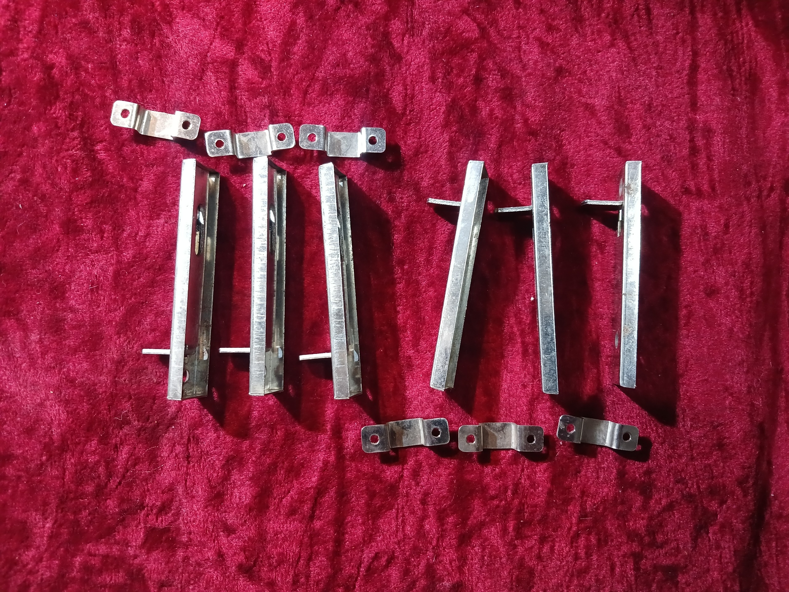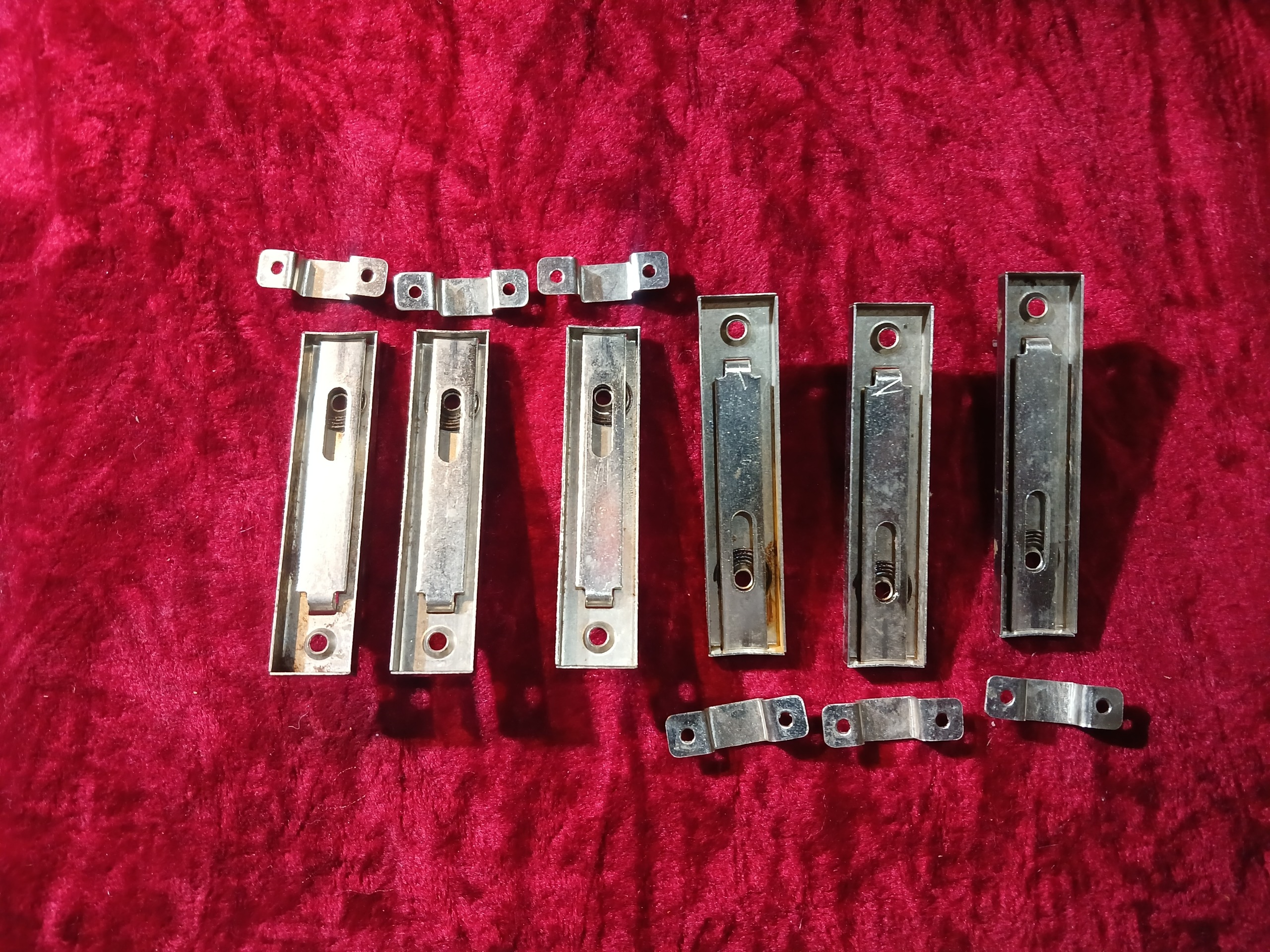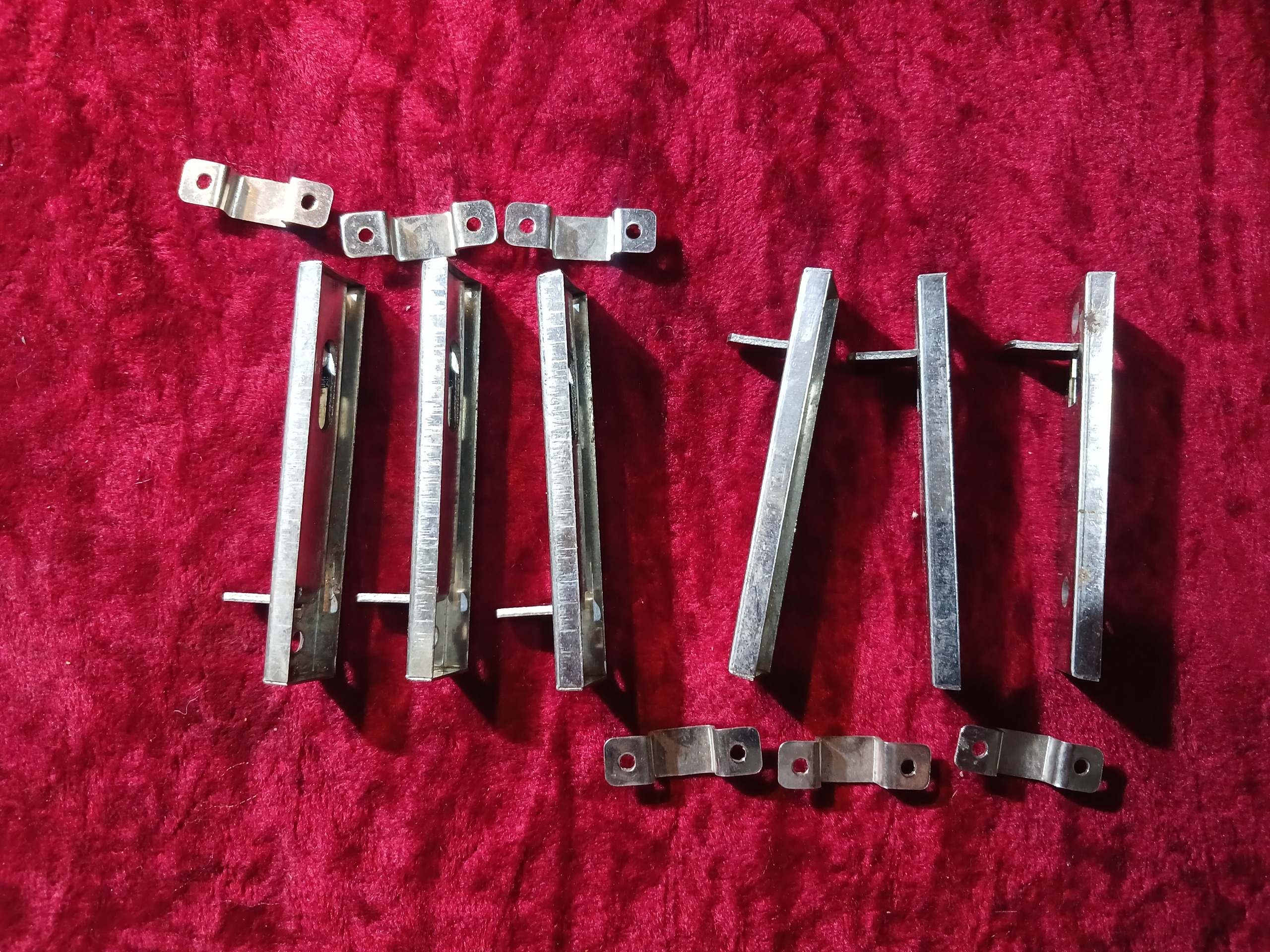 تعداد 6 عدد چفت فلزی آهنی قدیمی سالم و بدون ایراد قابل استفاده کلکسیونی خیلی خیلی تمیز و مرتب بنده فکر می کنم اصلا استفاده نشده است.