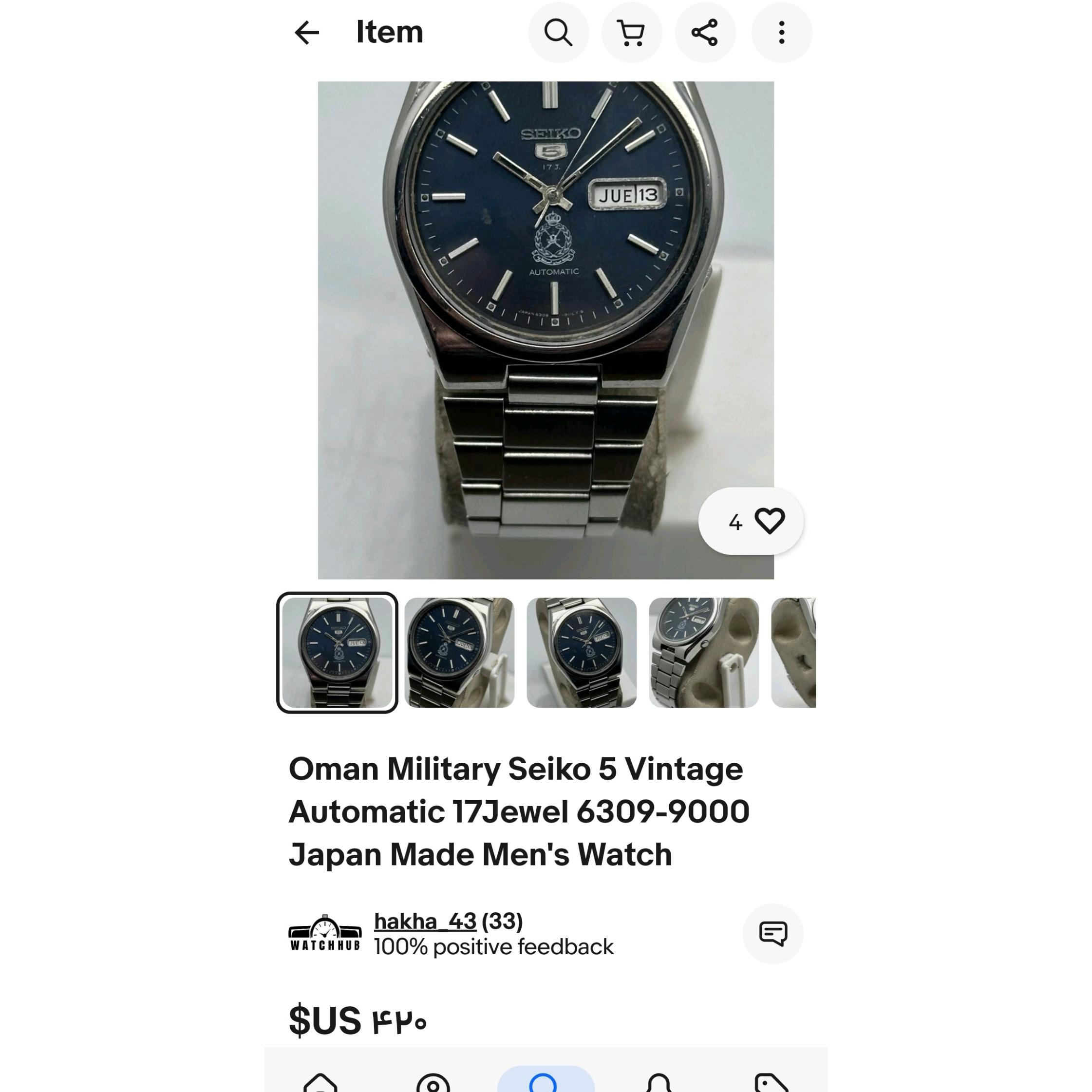 قیمت جهانیش هم کارکرده از 140 دلار هست تا 420 دلار این ساعت آکبند می باشد هنوز دو برچسب کمپانی سیکو پشتش هست