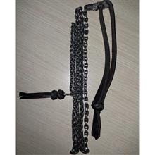 زنجیر قدیمی .طول زنجیر بدون چرم حدود 140 سانتی متر.باچرم حدود 160سانتی متر. دانه درشت به دانه ریز مرتب شده .