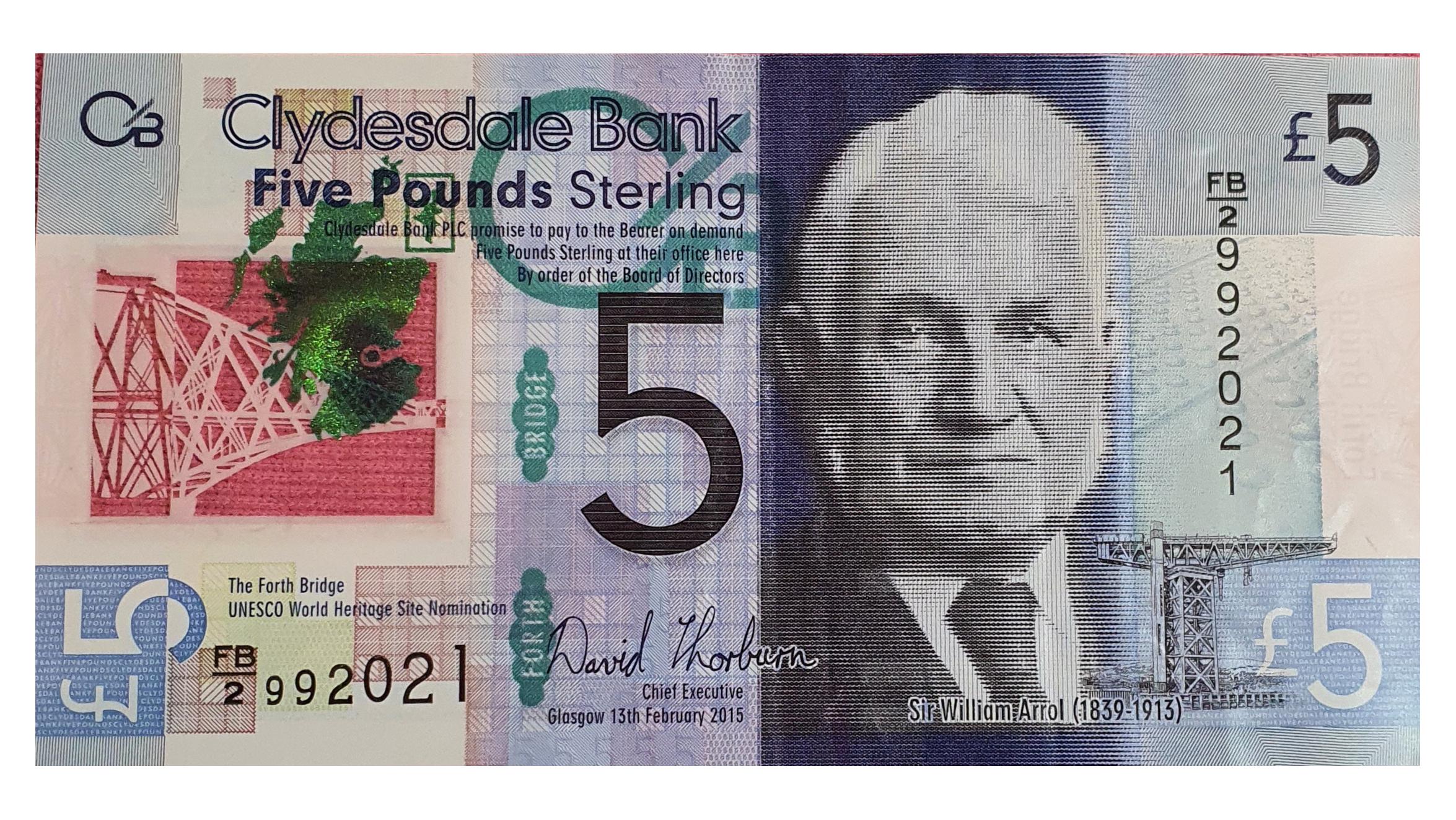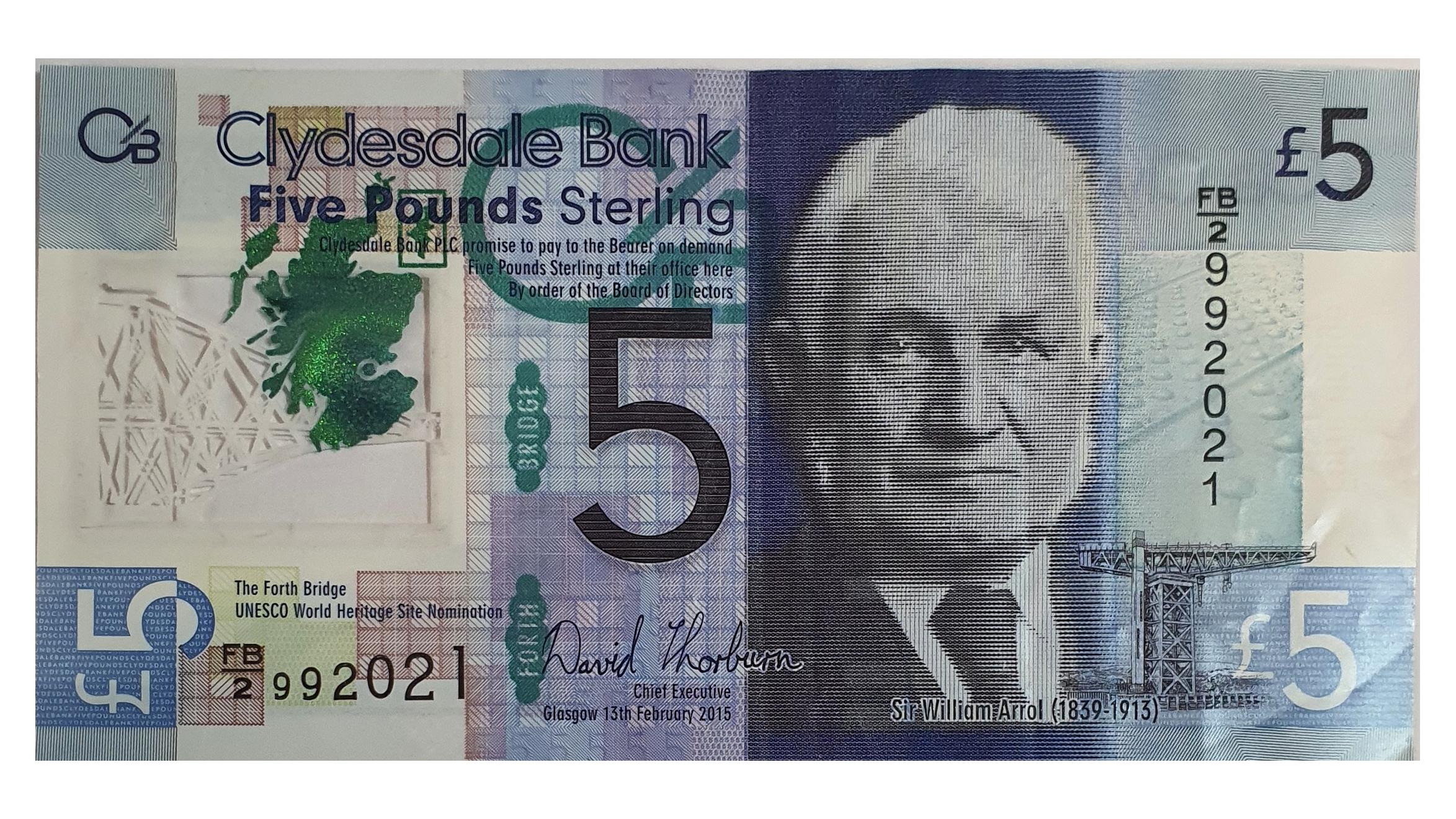 اسکناس نایاب 5 پوند استرلینگ 2015 اسکاتلند