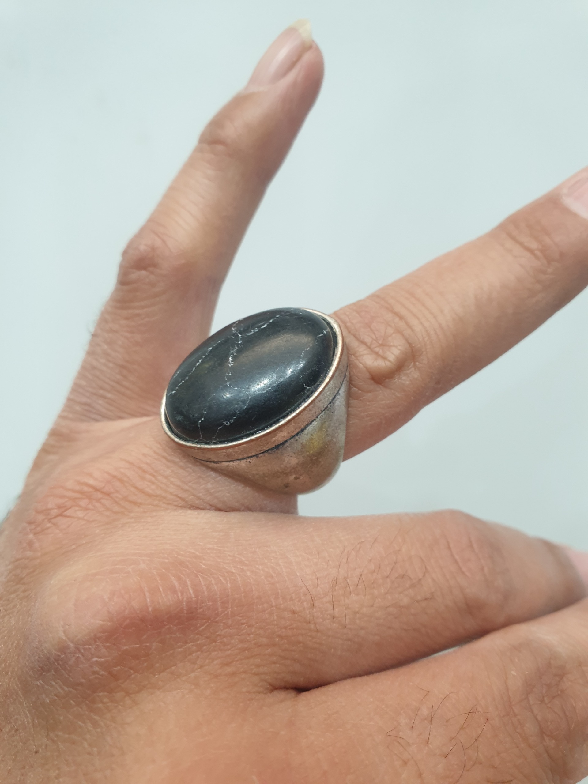 یک عدد انگشتر قدیمی نگین مشکی سالم