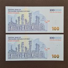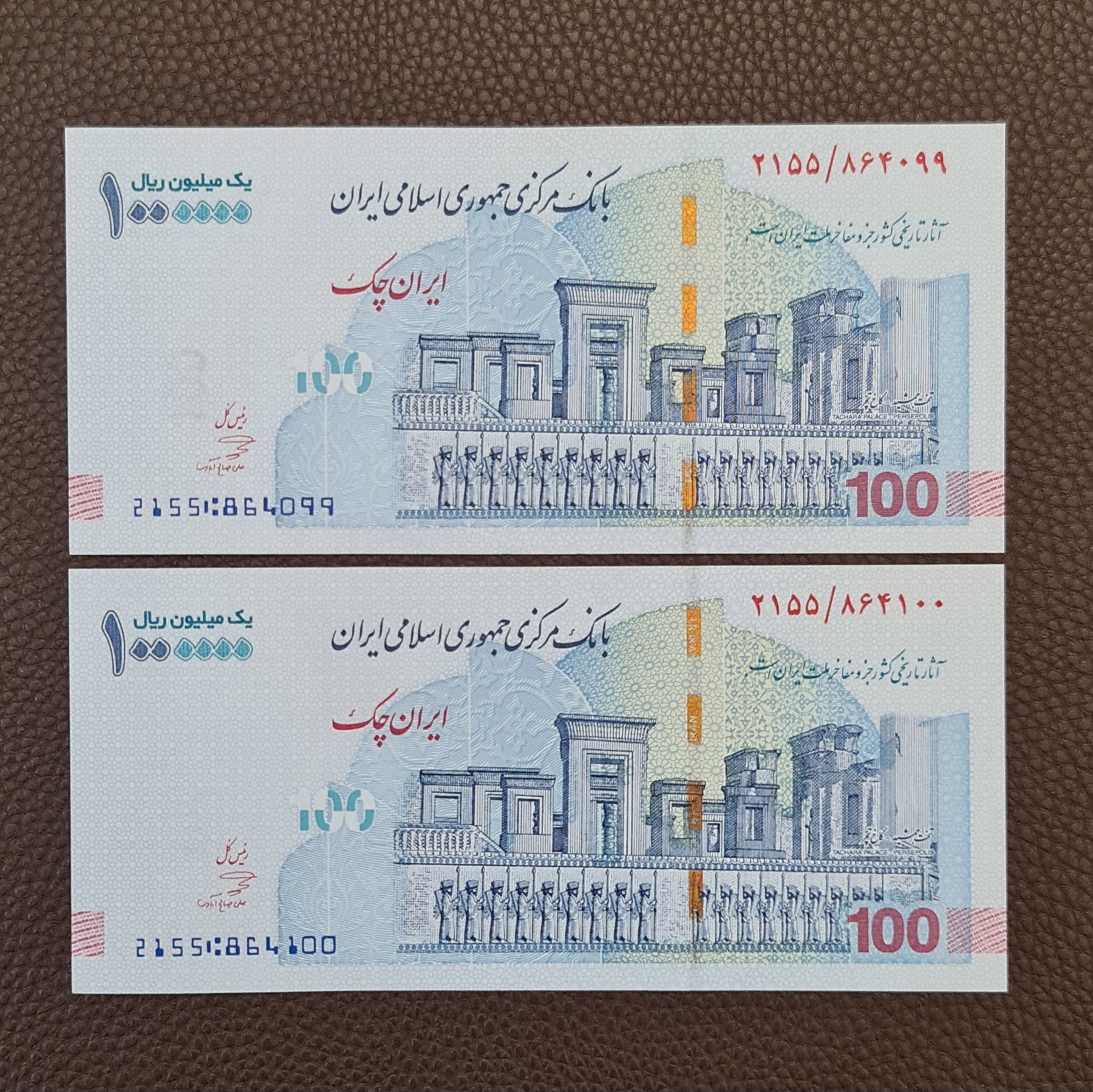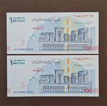 جفت تراول اسکناس 1000000 ریال (100 هزار تومان) کاخ تچر امضا صالح آبادی