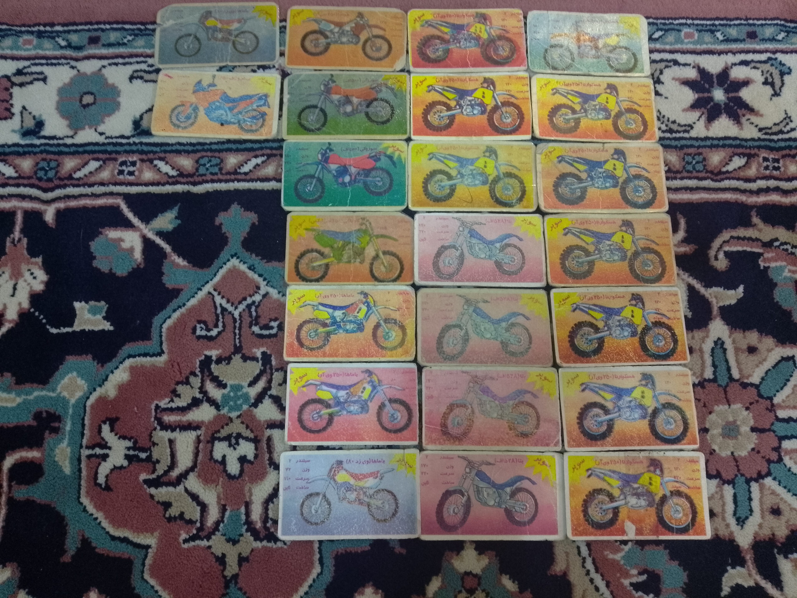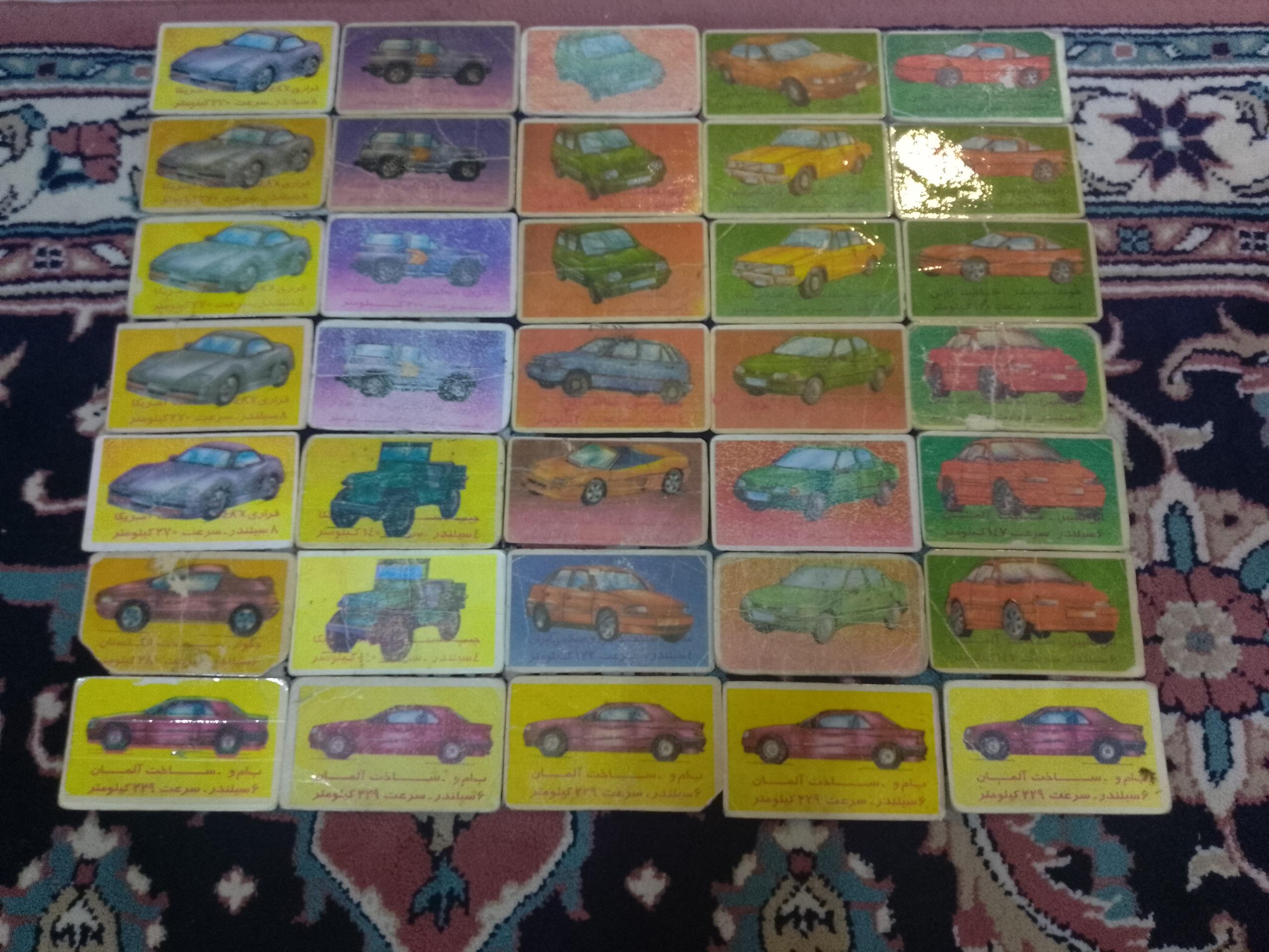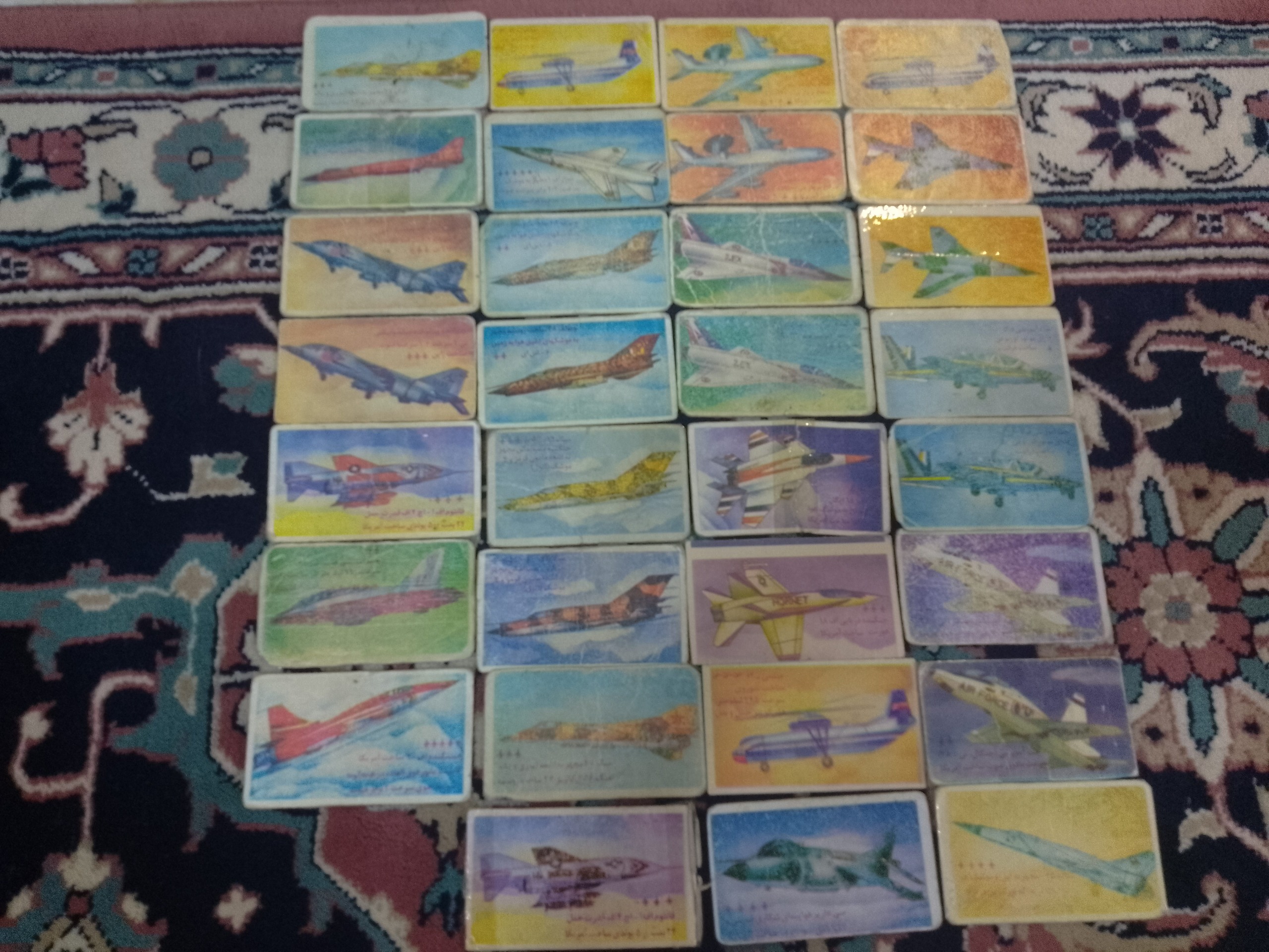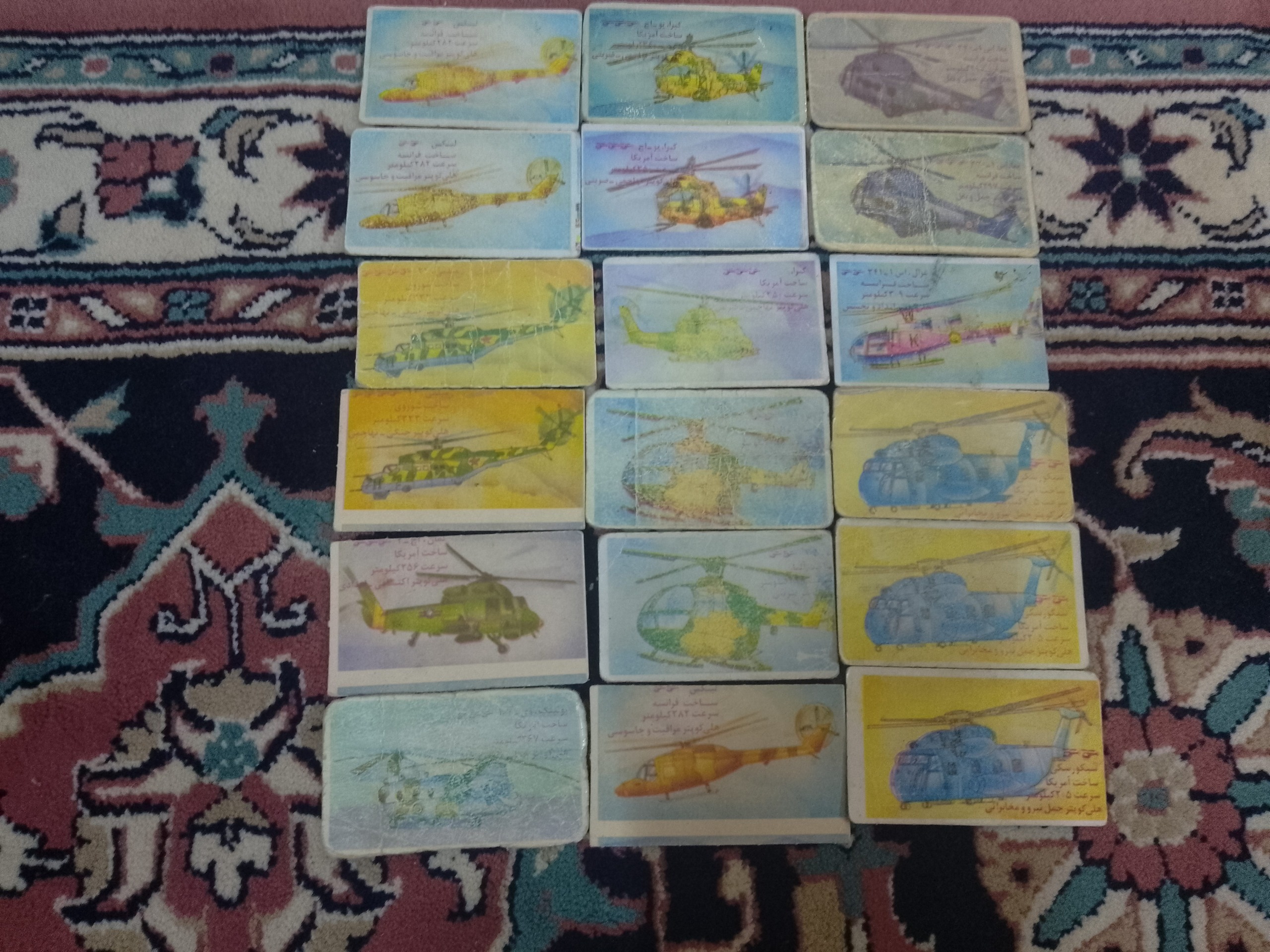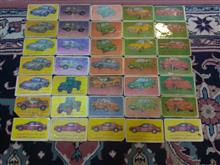 تعدادی کارت بازی قدیمی دهه هفتاد شامل ماشین موتور هواپیما و هلی کوپتر 107 عدد
