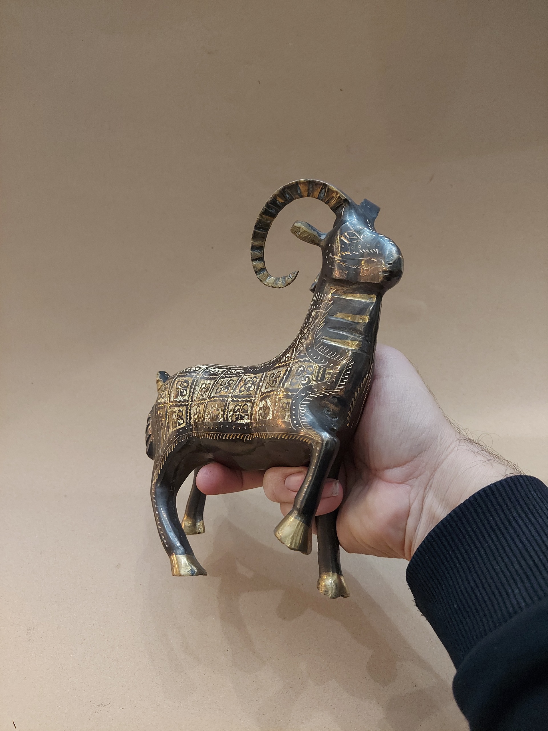 مجسمه برنجی هندی تمام قلمزنی بزکوهی