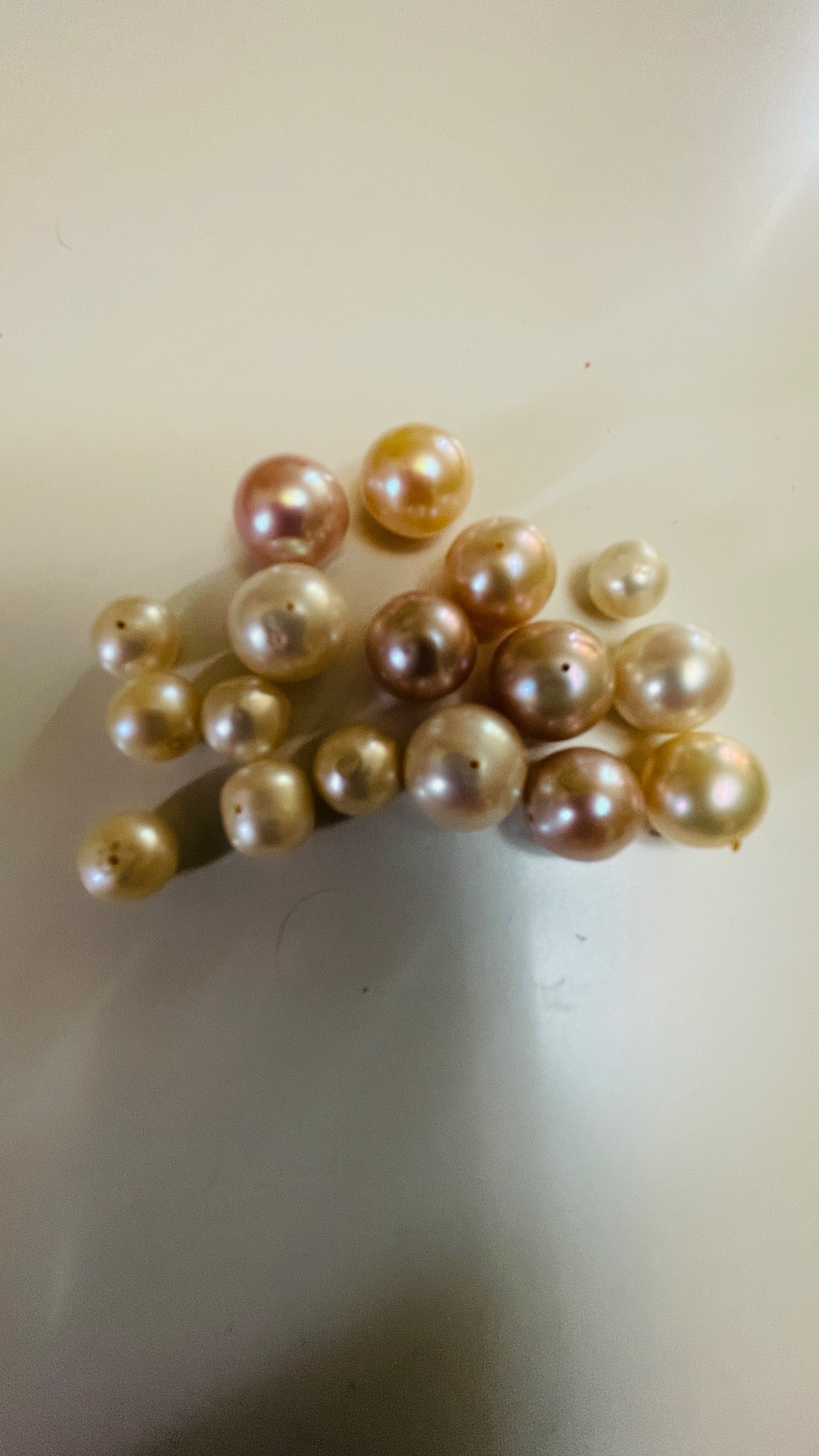 مروارید اب شیرین با بالاترین درصد درخشندگی وزن هر دونه تقریبی سه گرم میباشد در سه رنگ طلایی روشن صورتی روشن و بنفش روشن کاملا طبیعی از این مروارید 30 عدد موجوده دونه ایی هم فروخته میشود قیمت هر عدد 2700000