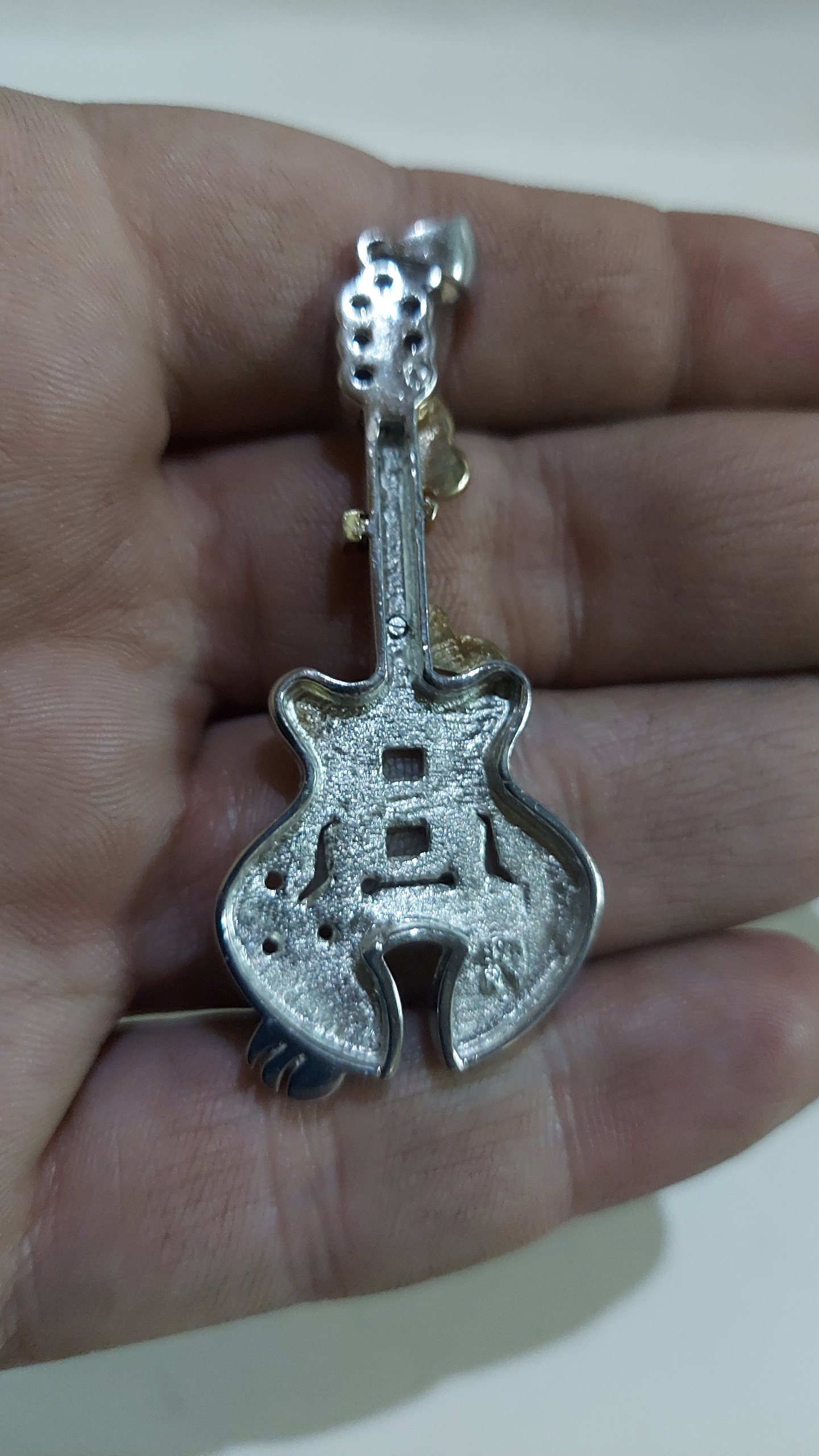 آویز بسیار زیبا گیتار نقره عیار بالا که دوباره به خاطر سیاه نشدن آبکاری شده کار ساخت خارج هست کیفیت عالی دوستان با توجه به تصاویر خرید فرمایید هر سوالی بود بپرسید