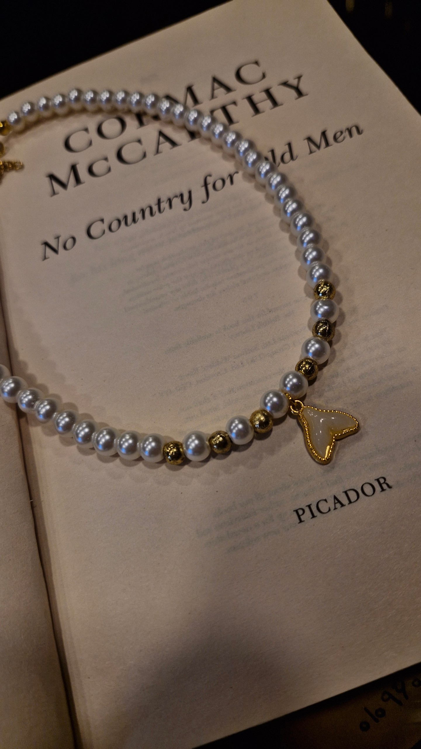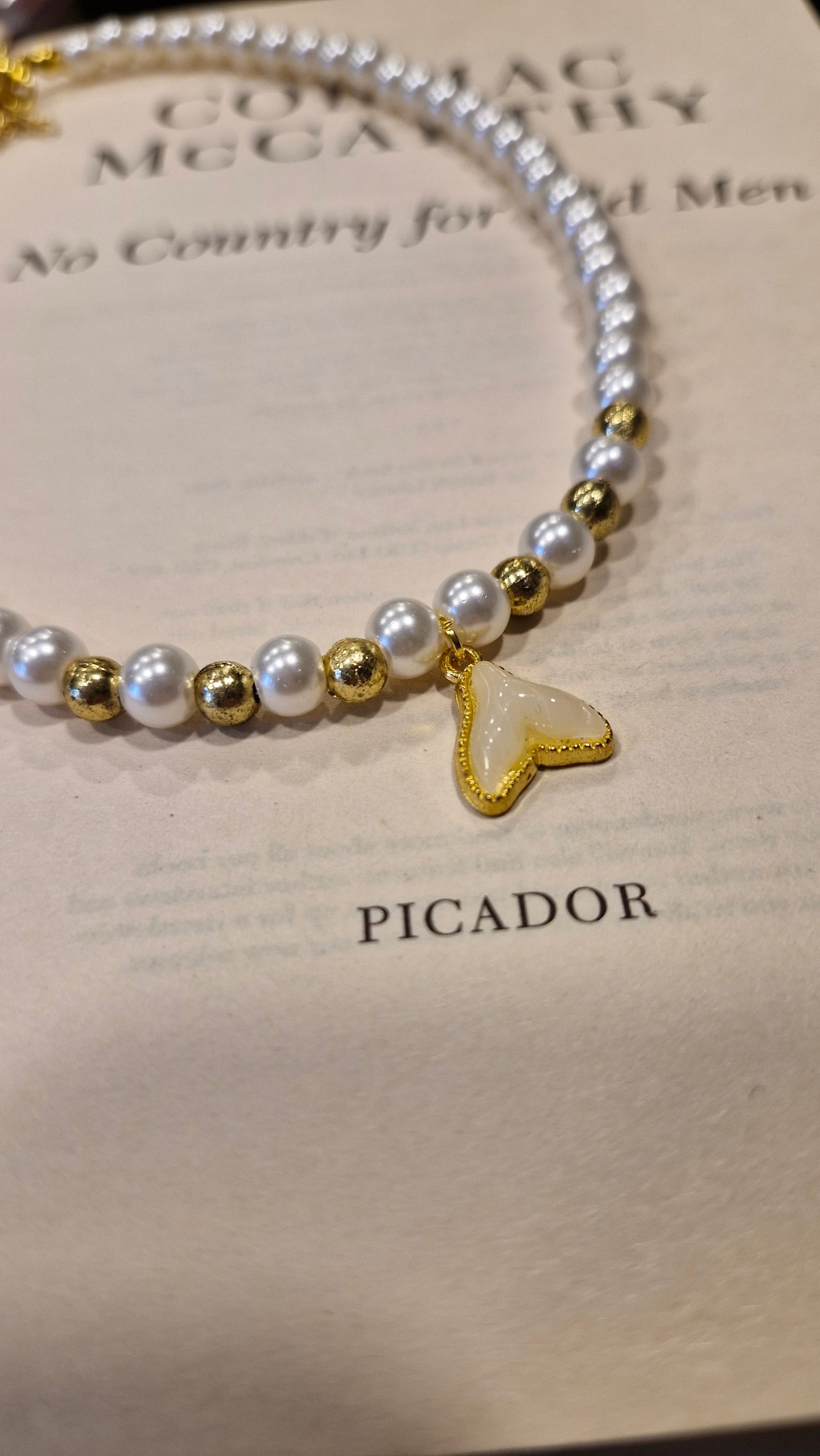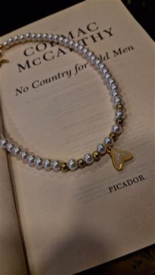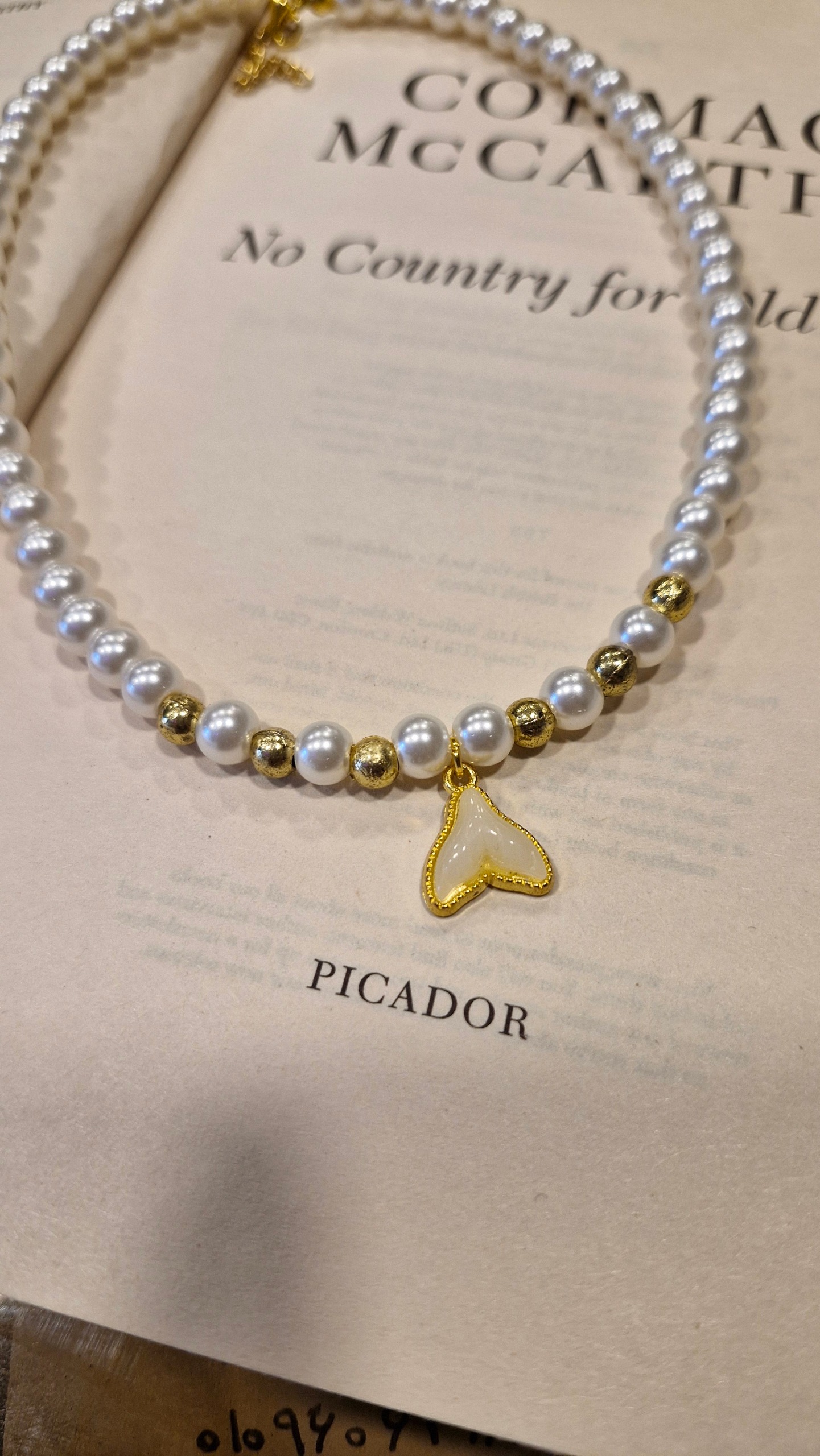گردنبند مرواریدی با آویز دم نهنگ طلایی
