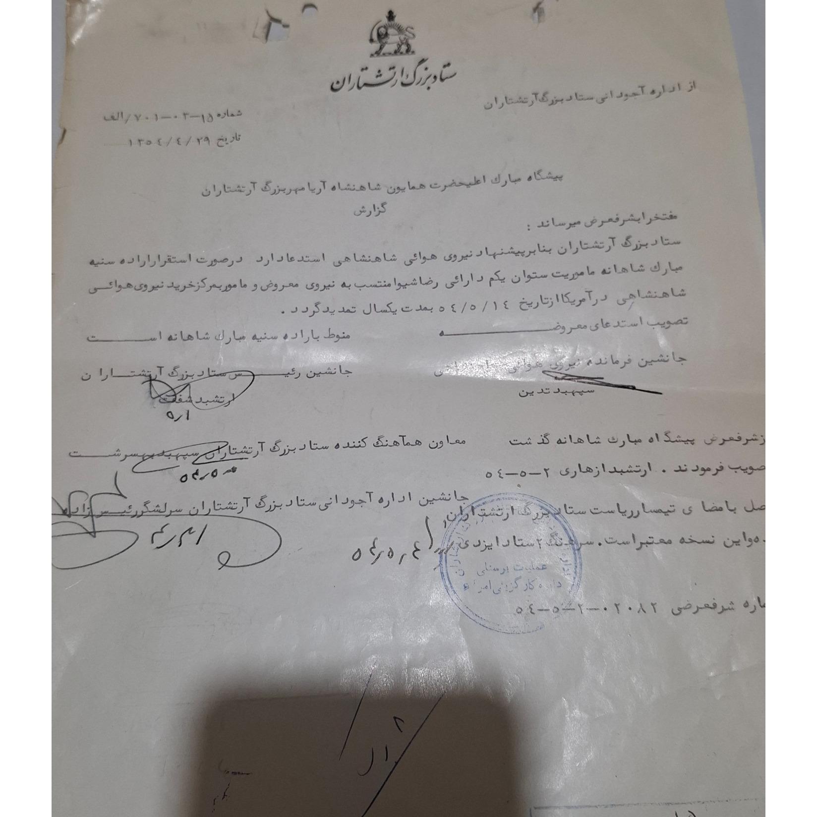 گزلرش به شاه پهلوی ارتشتاران سال 1354 با امضای سپهبد تدین