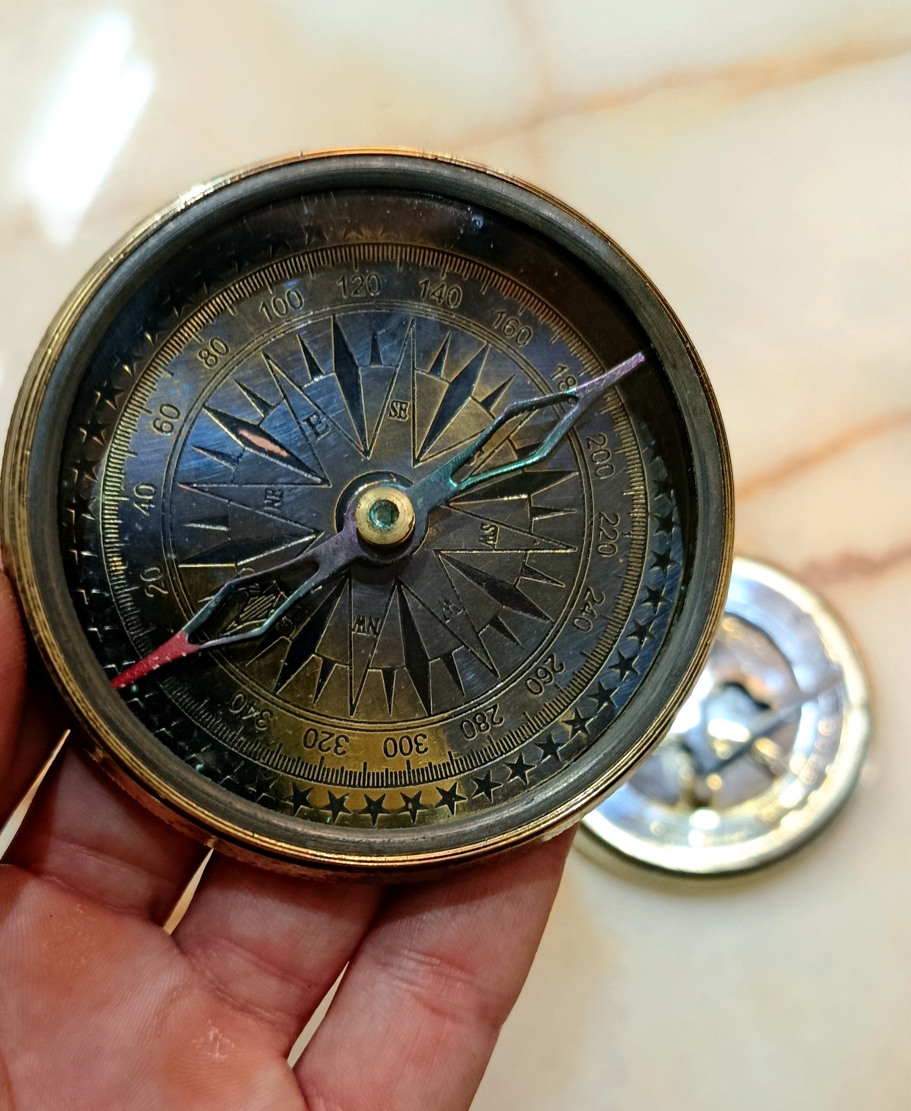 قطب نما و ساعت خورشیدی برنز آنتیک مارکدار وارداتی