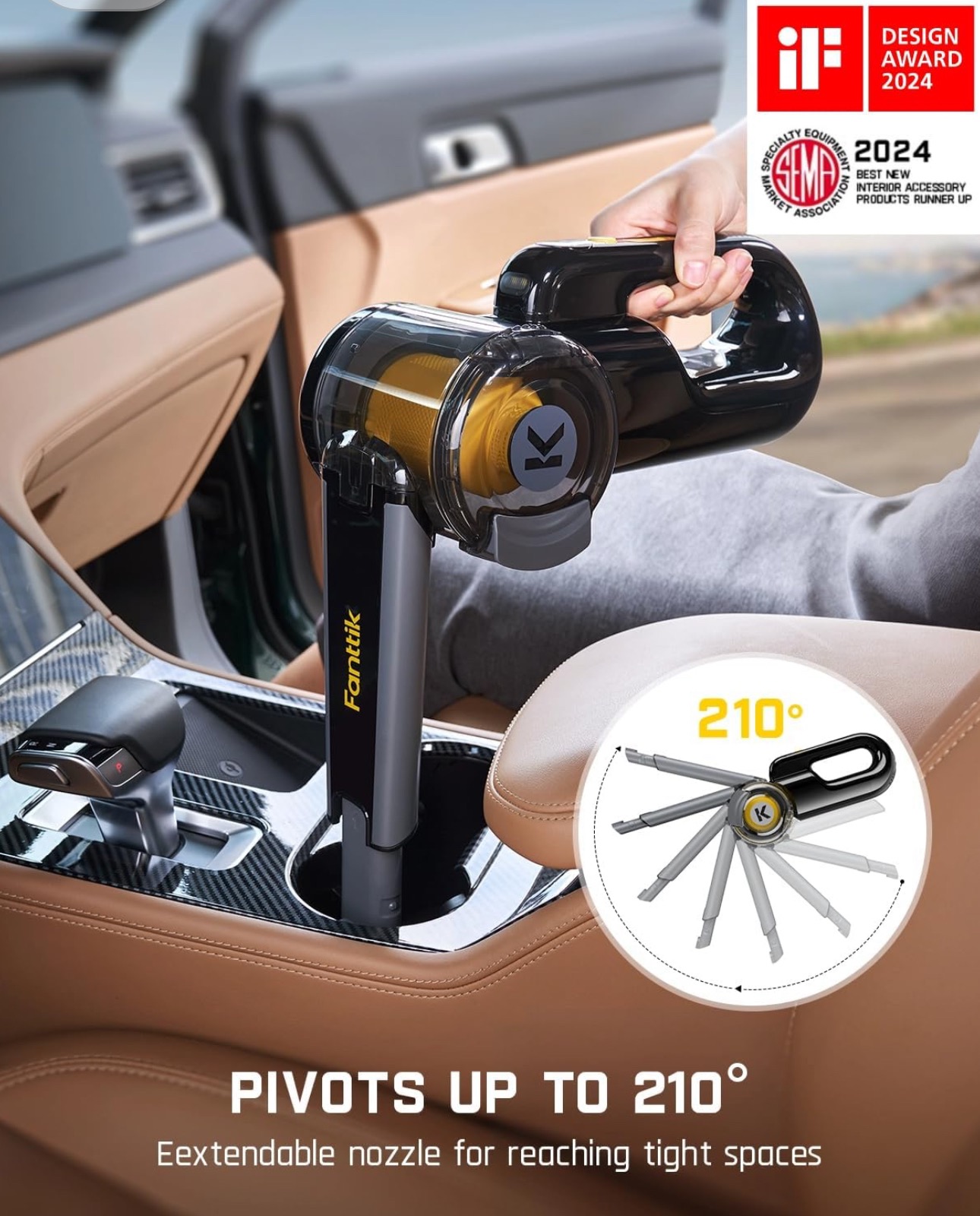 سیستم چرخشی 7 حالته: به راحتی شکافهای باریک خودرو و مکانهای صعبالعبور مانند بالای قفسهها یا زیر مبلها را تمیز کنید. سری چرخشی 180 درجهای Fanttik در 7 زاویه قفل میشود و دارای یک نازل قابل افزایش طول و چراغ LED برای حذف کامل زباله است.