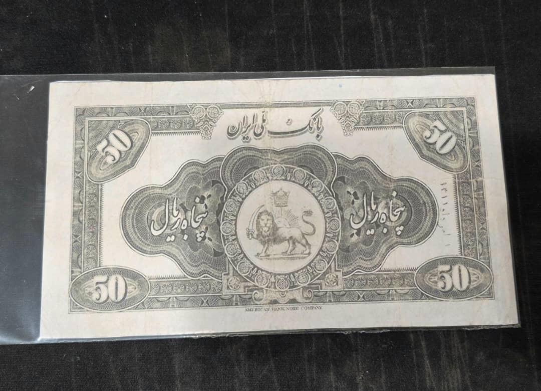 اسکناس 50 ریال کلاه کوچیک رضا شاه طرح
