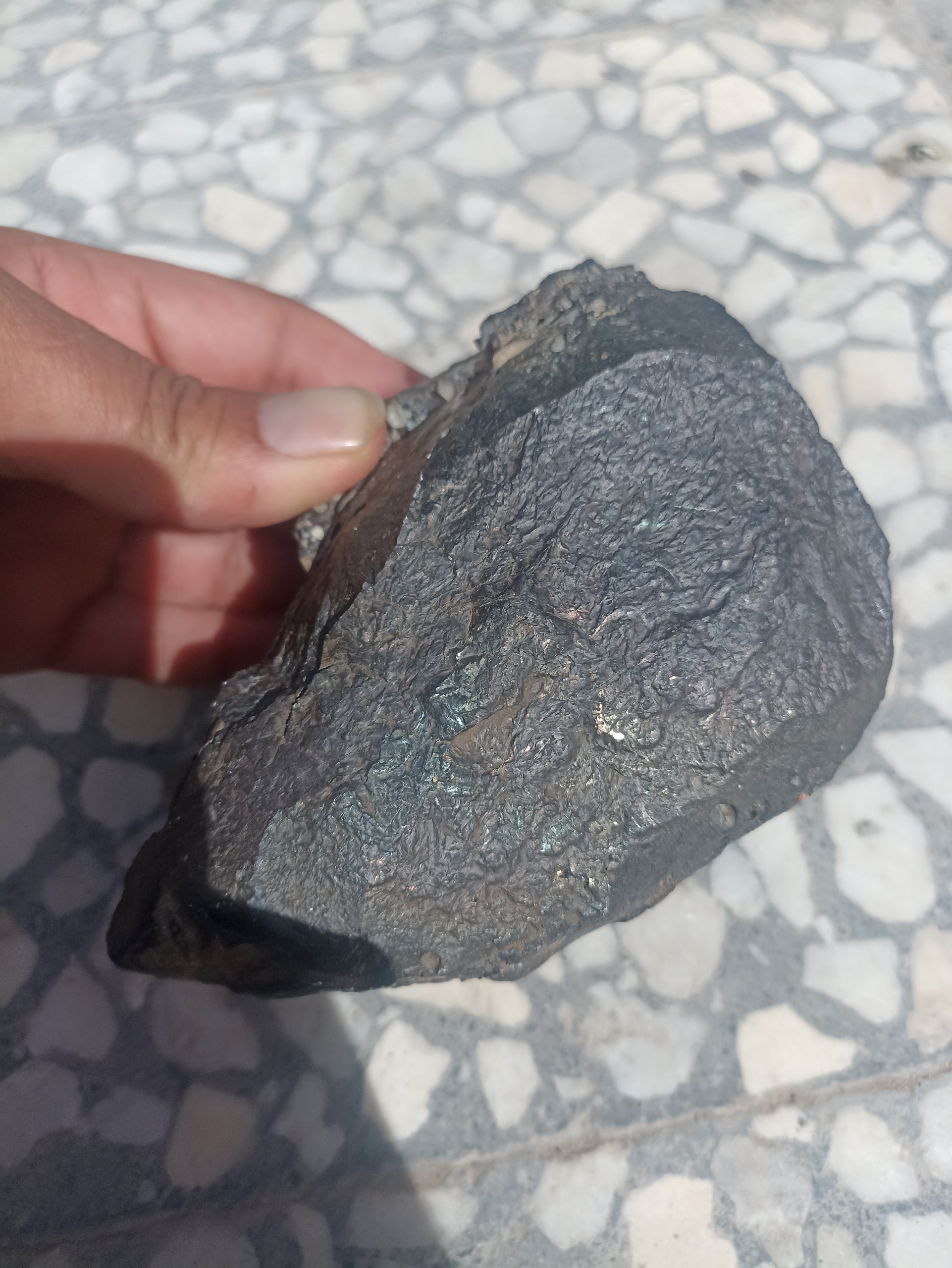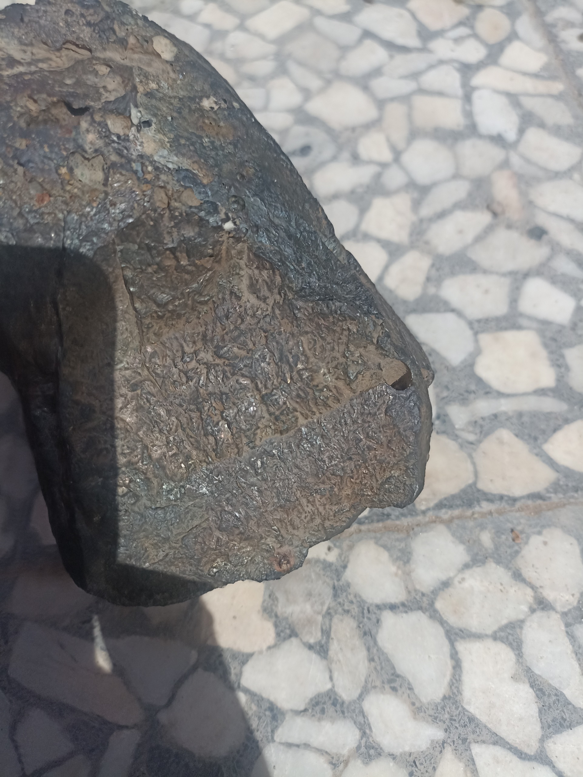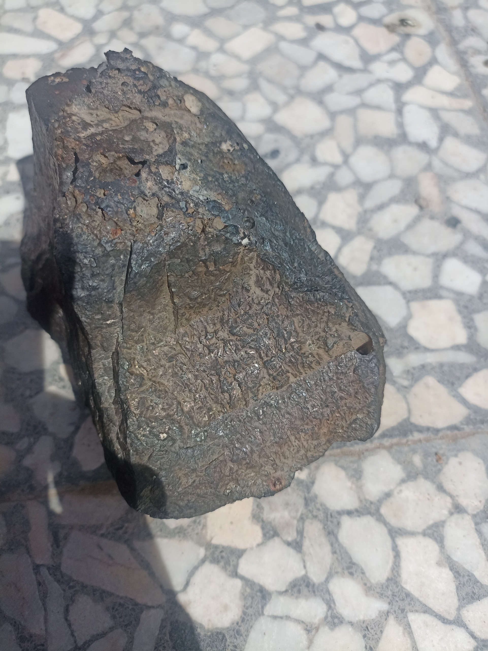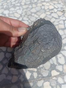 این سنگ مشکوک به شهاب سنگ دارای ذرات طلایی و وزنی بسیار سنگین نزدیک به 1200گرم هنوز بیشتر است . ذرات زرد مثل طلا داره