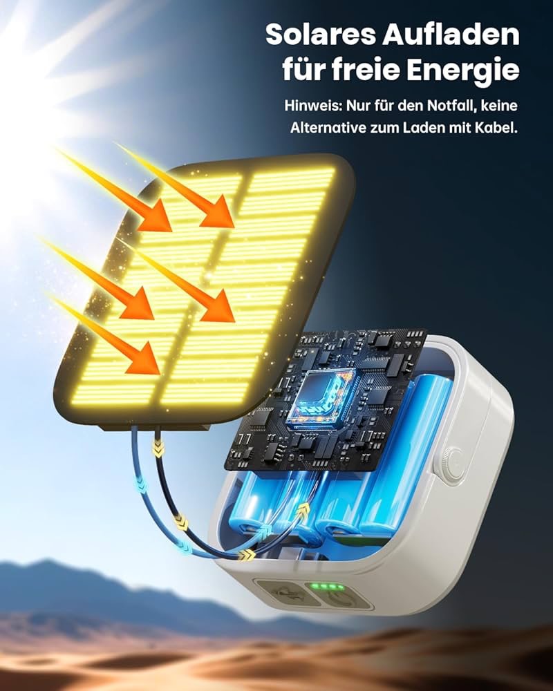 شارژ خورشیدی برای مواقع اضطراری: این چراغهای کمپینگ دارای پنل خورشیدی داخلی بسیار کارآمد هستند که میتوانند انرژی رایگان را از نور مستقیم خورشید در مواقع اضطراری دریافت کنند. توجه: فقط برای مواقع اضطراری از شارژ خورشیدی استفاده کنید، بهتر است با کابل شارژ کنید!!!