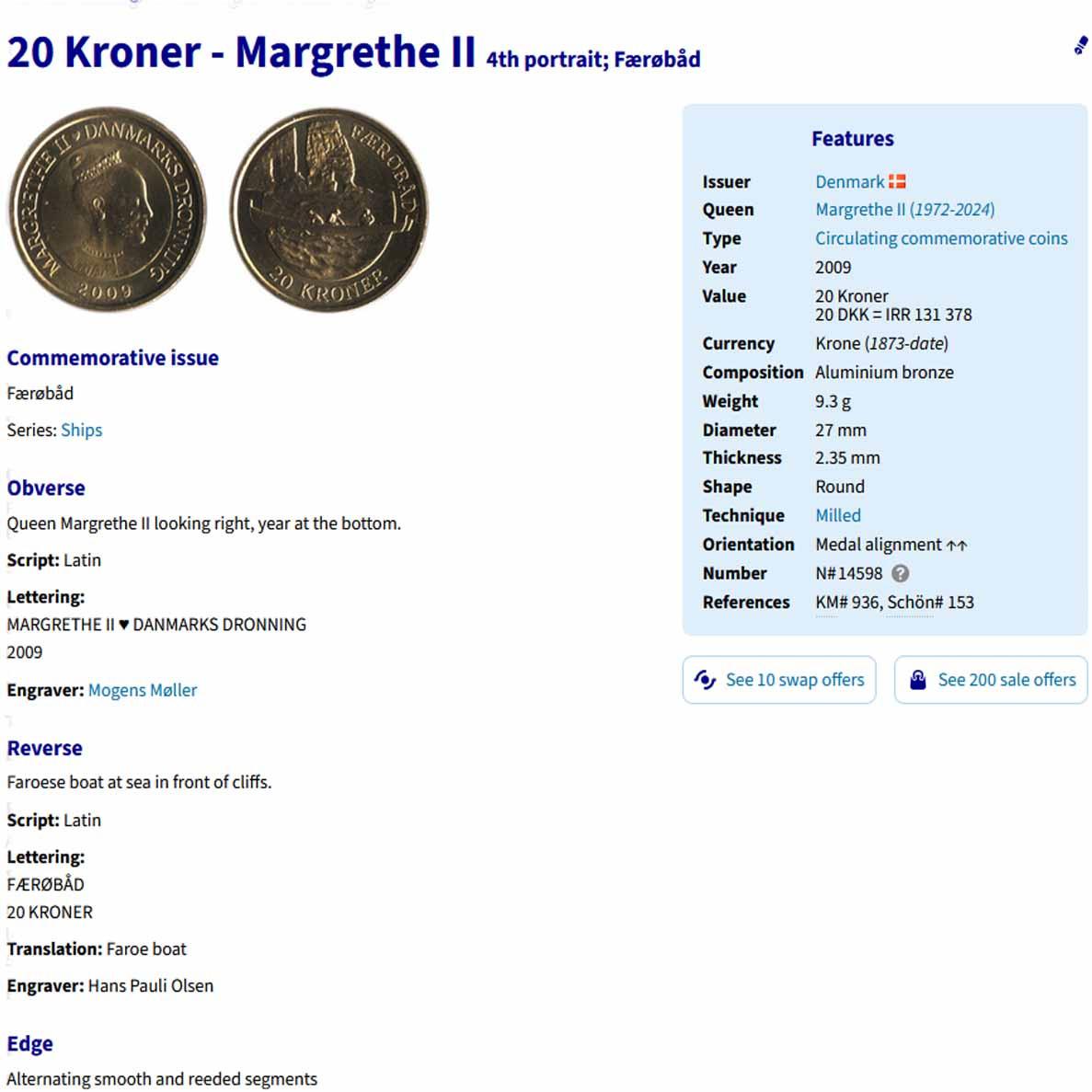 سکه یادبودی 20 کرون دانمارک 2009 (بسیار کمیاب)