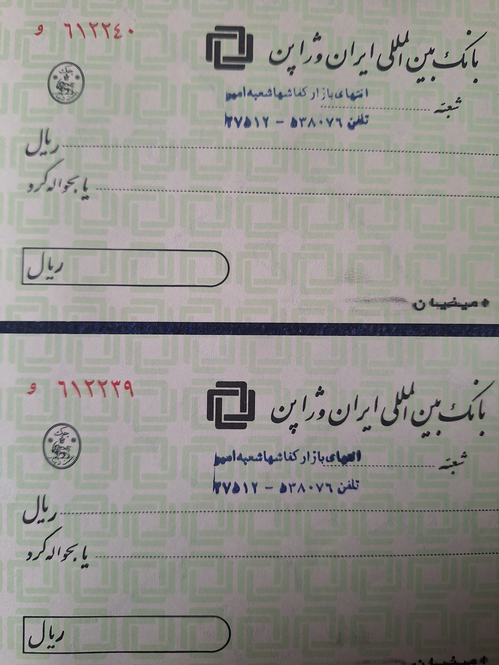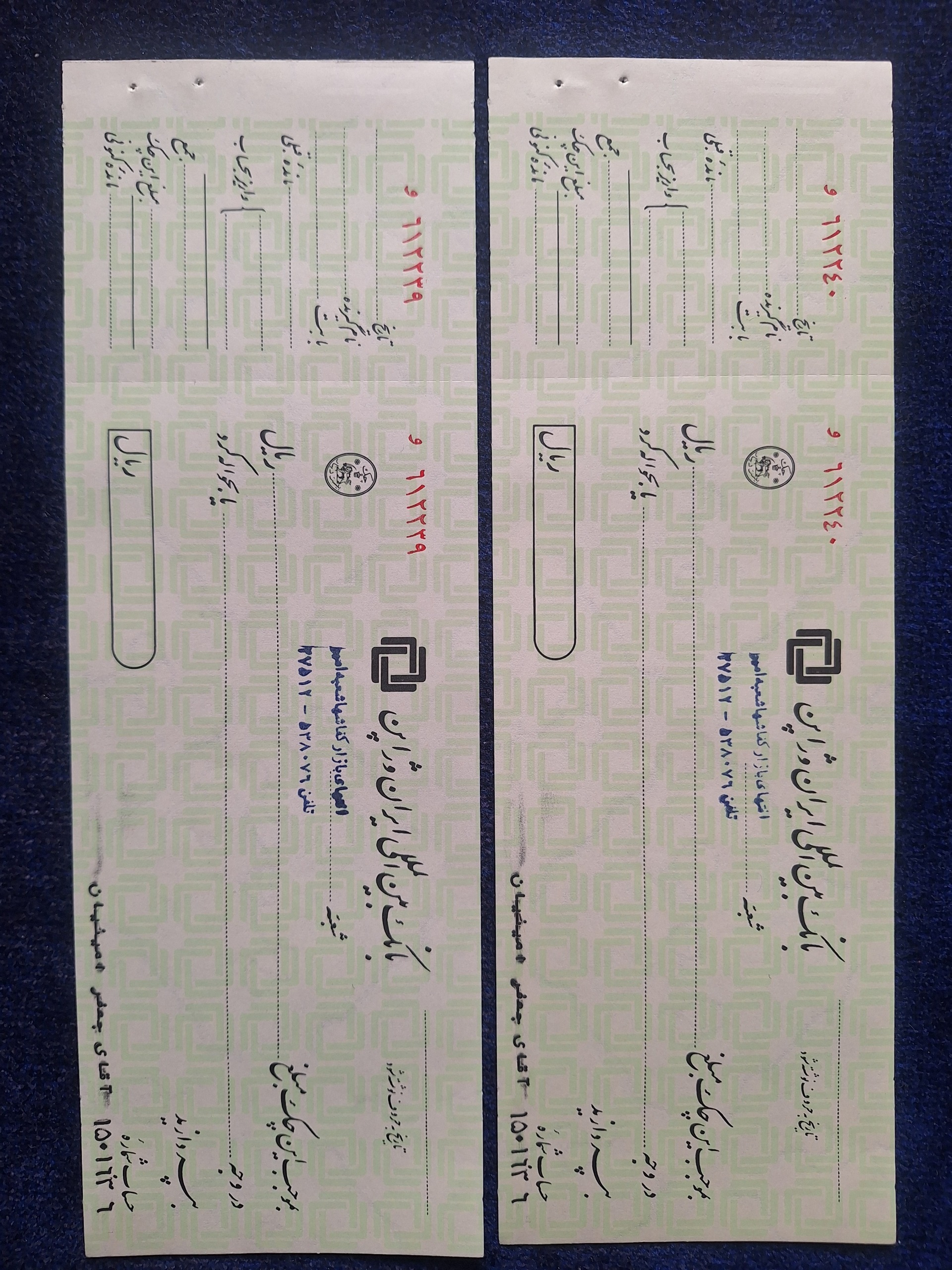 جفت چک بانک بین المللی ایران و ژاپا سایز بزرگ 20 دیناری بزرگ